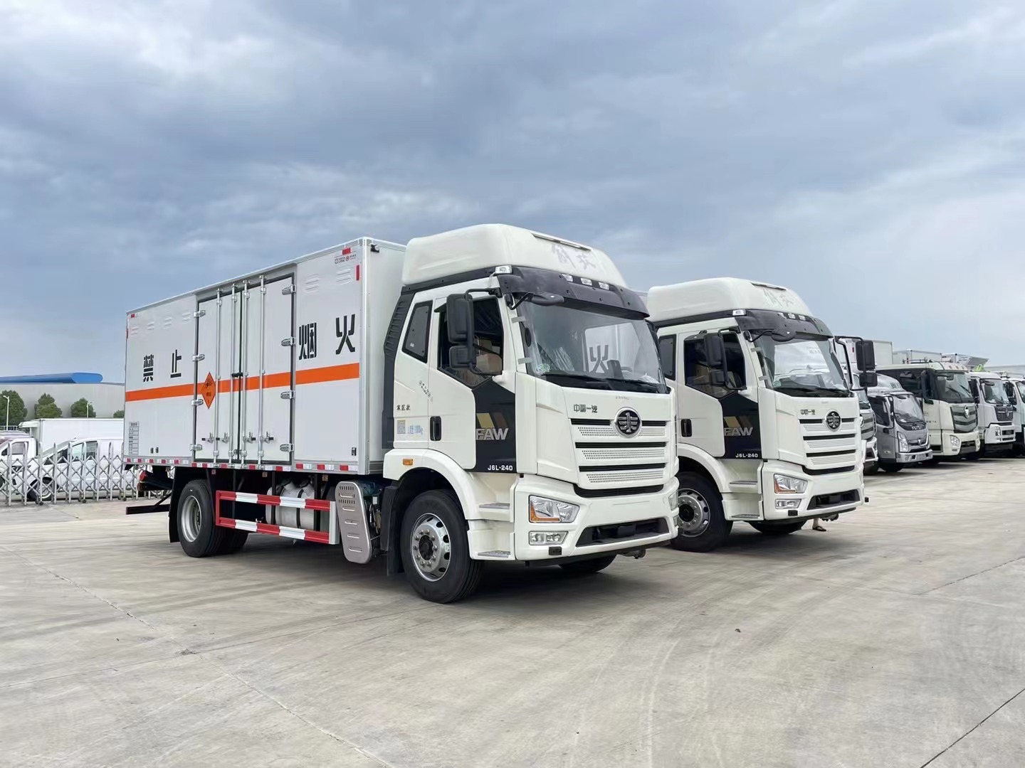 嚴(yán)格按照公告尺寸制作。外板采用烤漆板帶透氣孔,內(nèi)飾為導(dǎo)電性能良好的鋁平板有透氣孔,矩形骨架結(jié)構(gòu)內(nèi)部填充防火阻燃材料,復(fù)合加鉚合工藝。廂體四周鋁合金包邊及包角,車廂底板4mm鋪設(shè)防靜電膠皮,廂體前臉50公分高鋪設(shè)防靜電膠皮。后部設(shè)置對開門,右側(cè)一組雙開門,廂體內(nèi)部兩側(cè)安裝捆綁貨物的臥環(huán)。廂體內(nèi)部安裝煙霧報**器及防盜報**感應(yīng)器。車廂一周粘貼橙色反光帶,箱體粘貼 菱形標(biāo)志牌,安全告示牌,危險品牌,箱體安裝示廓燈(前白后紅),拖地靜電帶。