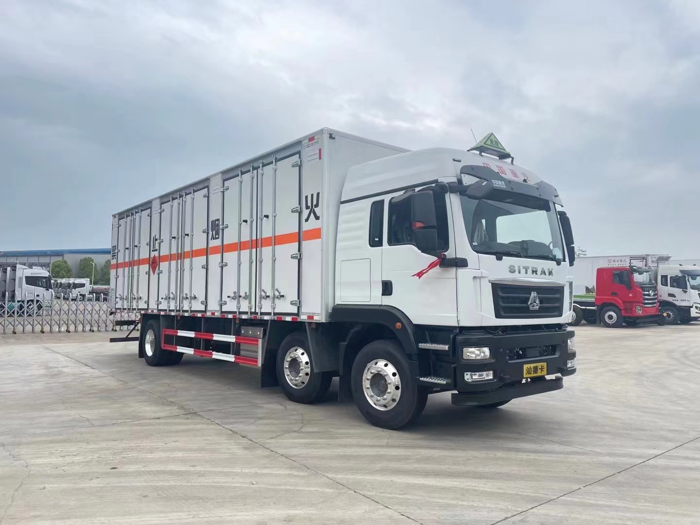 重汽汕德卡三軸9米6爆破器材運輸車又名炸藥運輸車,雷管運輸車,防爆車,民爆車,煙花爆竹運輸車。它是根據國家有關部委對爆破器材運輸的規范和用戶的要求而研制生產,產品符合國防科工委關于《爆破器材運輸車安全技術條件》的要求。具有廂體強度高、防火阻燃、防雨、防止靜電火花、煙火報警和防盜報警等主要功能。