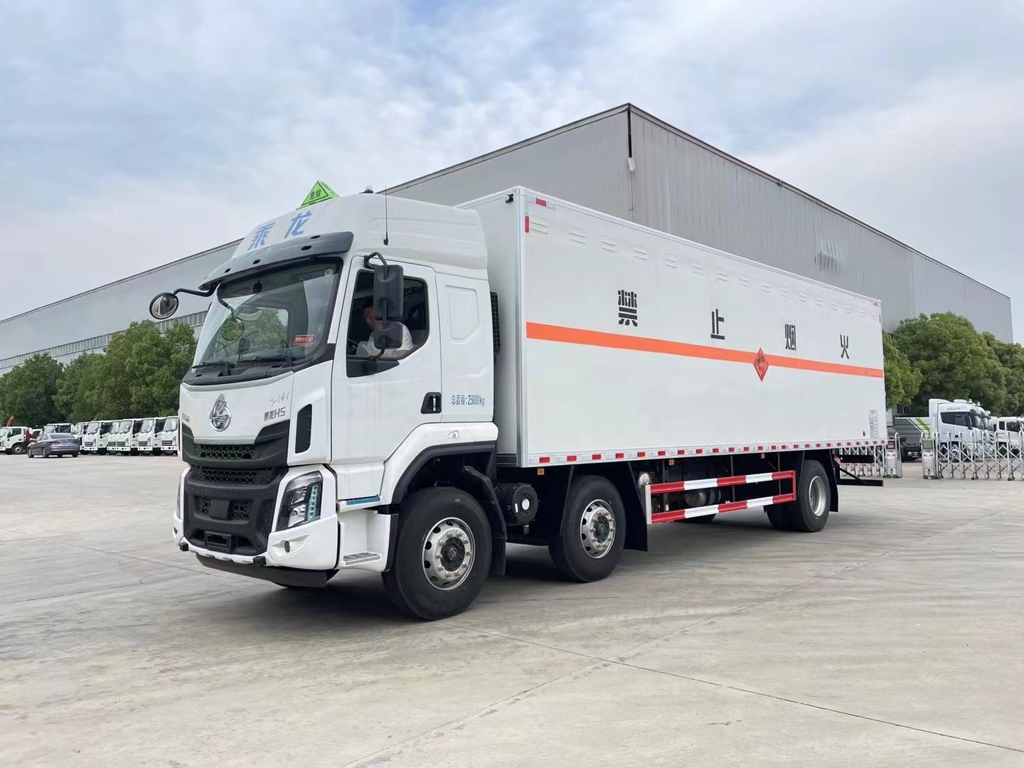 1.該車適用于運(yùn)輸危險(xiǎn)品。廂體頂部封閉,不可開啟。2.運(yùn)輸具有獨(dú)立容器包裝的介質(zhì), 危險(xiǎn)貨物運(yùn)輸車輛類型:EX/Ⅲ,危險(xiǎn)貨物類別號(hào): 1.1B, 1.1C, 1.1D, 1.1G, 1.2C, 1.2D, 1.2G,1.3G,1.4C,1.4D,1.4G。3.僅選用排氣管前置,前輪盤式制動(dòng)器,子午線輪胎,后軸空氣懸掛底盤,選用限速裝置,限速80km/h;轉(zhuǎn)向輪安裝輪胎爆胎應(yīng)急防護(hù)裝置,該車安裝帶有衛(wèi)星定位功能的行駛記錄儀;安全裝置為導(dǎo)靜電帶,用于防止靜電;該車安裝ETC車載裝置。4.EBS型號(hào)/企業(yè): EBS5/東科克諾爾商用車制動(dòng)系統(tǒng)(十堰)有限公司。 |