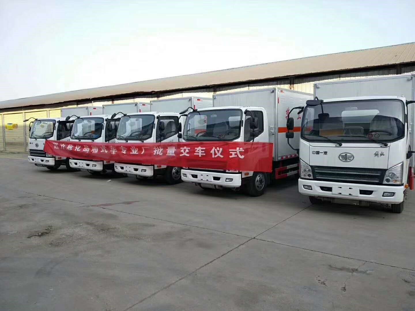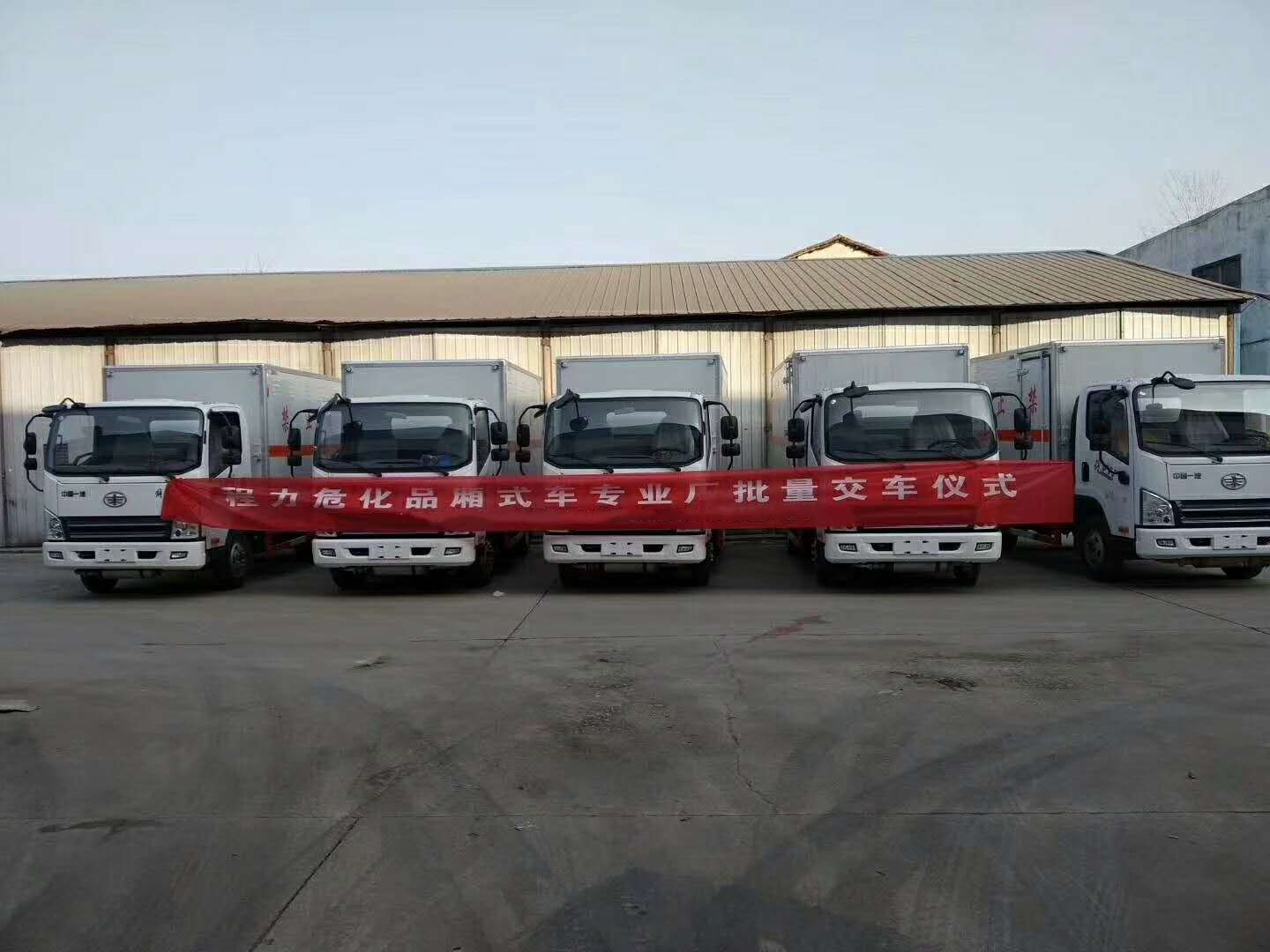 安徽徐總通過朋友介紹找到我司陳經理進行合作,訂購了五臺解放雜項危貨車!因公司車間繁忙,五臺雜項危貨車通過一個月時間全部已做好,于昨日下午檢查合格辦理出廠!感謝安徽徐總的信任與支持,祝用車愉快、生意興隆!解放雜項危貨車,廂體尺寸廠4.05米,濰柴110馬力發動機,是一款性價比非常高的車型!若您需要訂購雜項危貨車,可選購此款車型!以下是具體發車圖片: