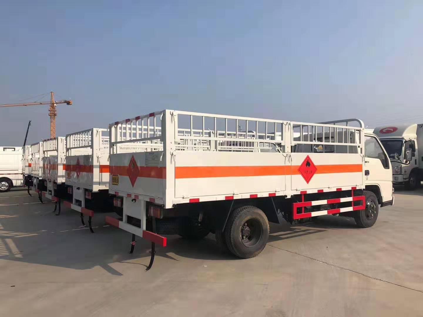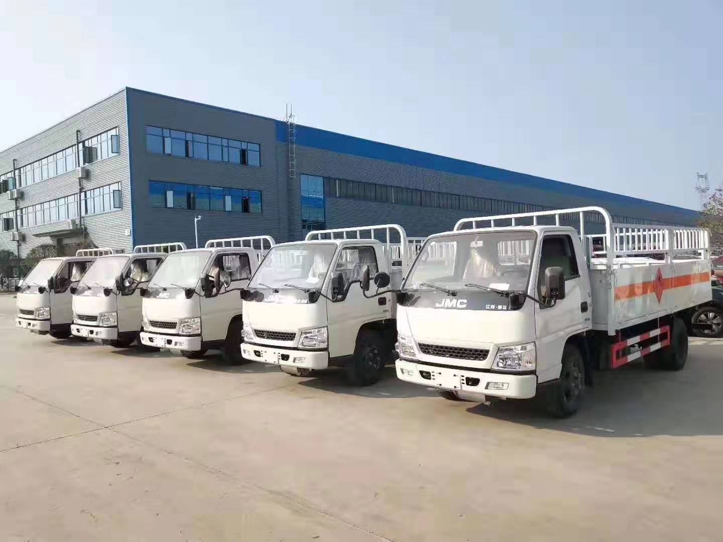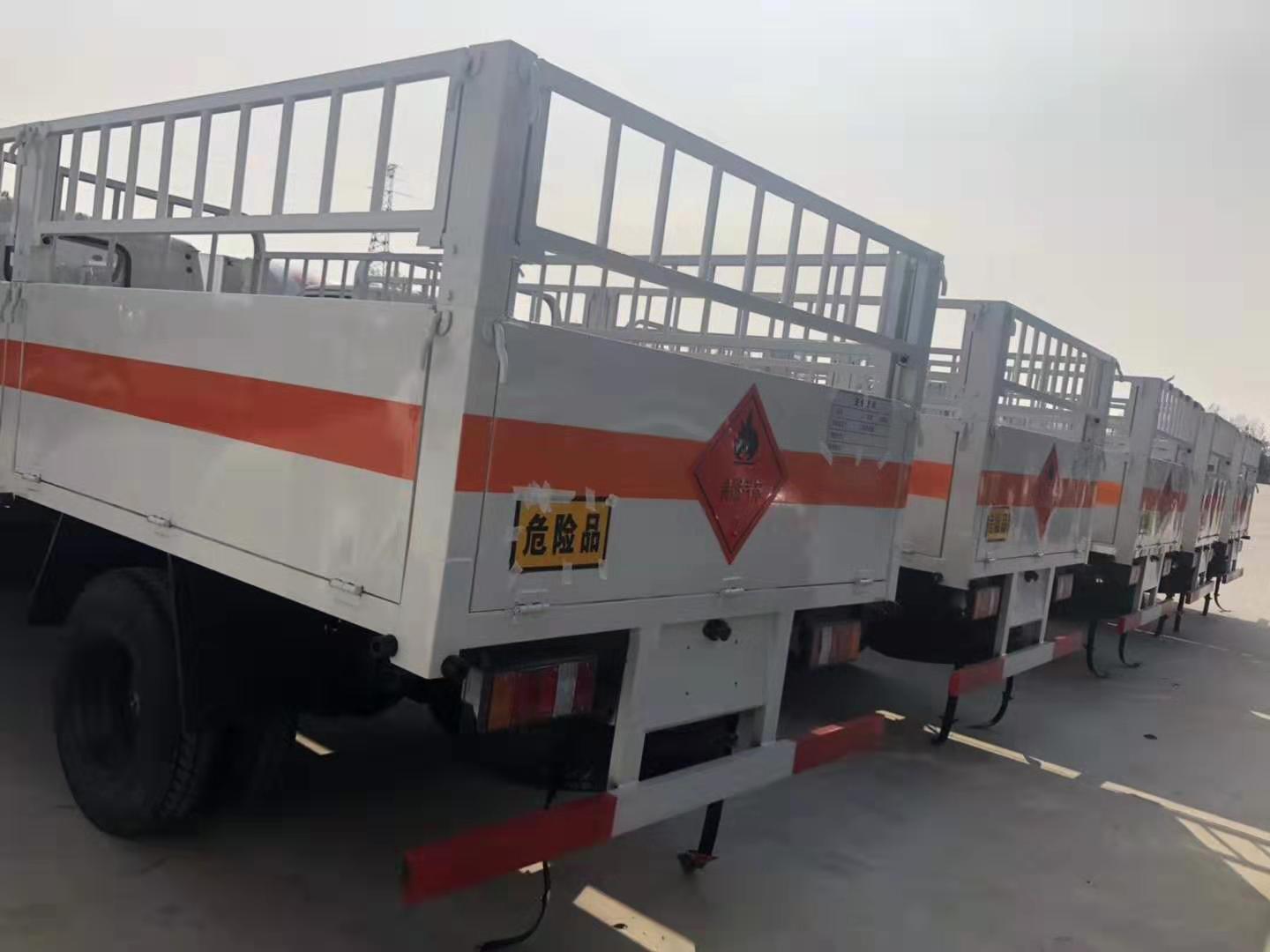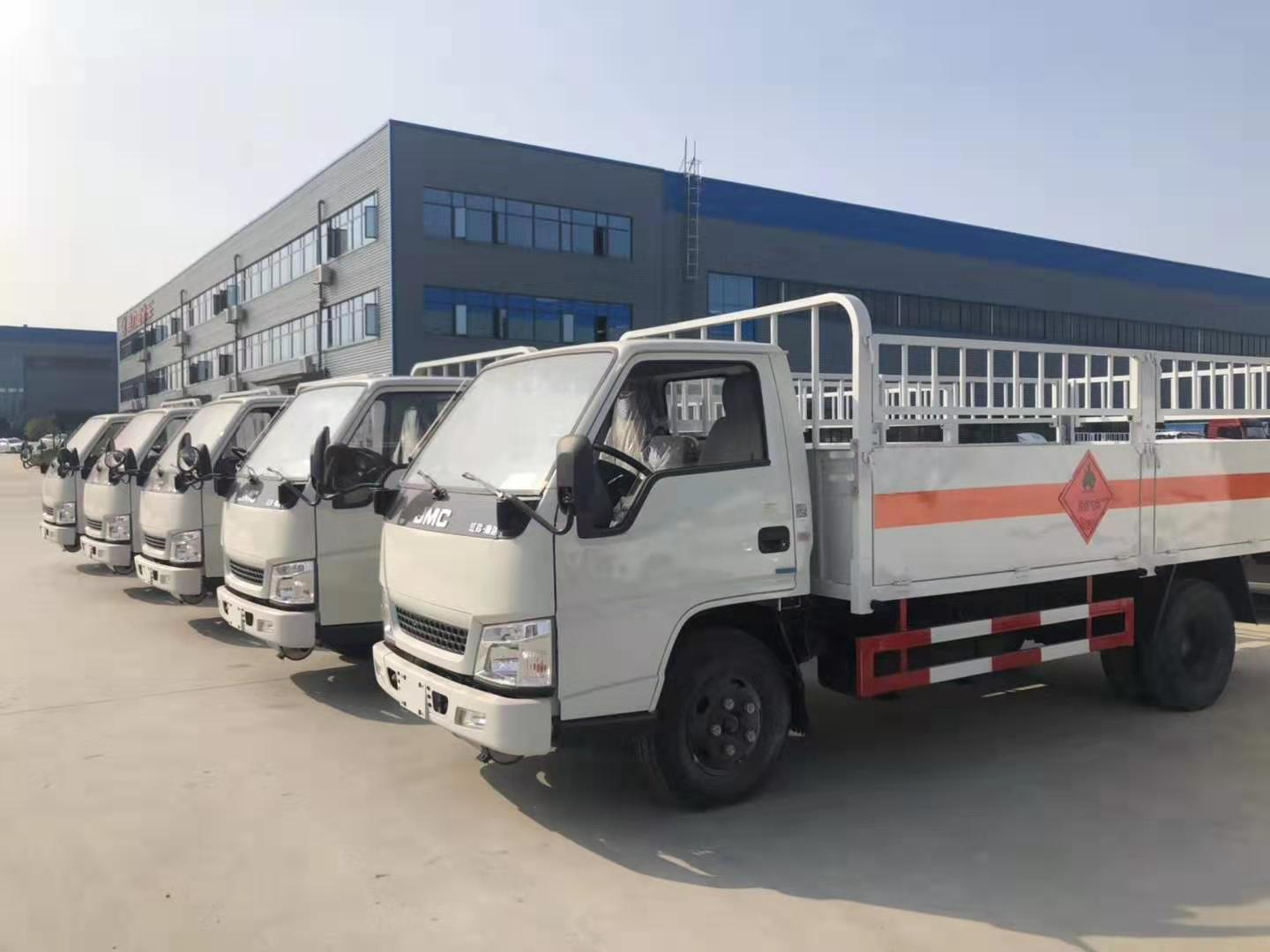 山東徐總因業(yè)務(wù)需求在我司批量訂購(gòu)了五臺(tái)江鈴4.1米氣瓶運(yùn)輸車,該車采用江鈴原廠危險(xiǎn)品車底盤,3360mm軸距、JX493ZLQ4江西五十鈴發(fā)動(dòng)機(jī)(108馬力)、7.0鋼絲輪胎、助力、油剎、148車架、1.5噸前橋/3.3噸級(jí)后橋、12伏單電瓶、前置排氣管、貨廂尺寸為4200X1850X1730(mm),邊板對(duì)折四開門、外板采用1.2MM厚冷軋板,內(nèi)襯為矩形管骨架牢靠穩(wěn)定,底板為3mm厚花紋板,有靜電帶、滅火器、防火罩。整車國(guó)標(biāo)反光標(biāo)示及警告標(biāo)志;目前車輛已做好,以下是具體實(shí)拍圖片: