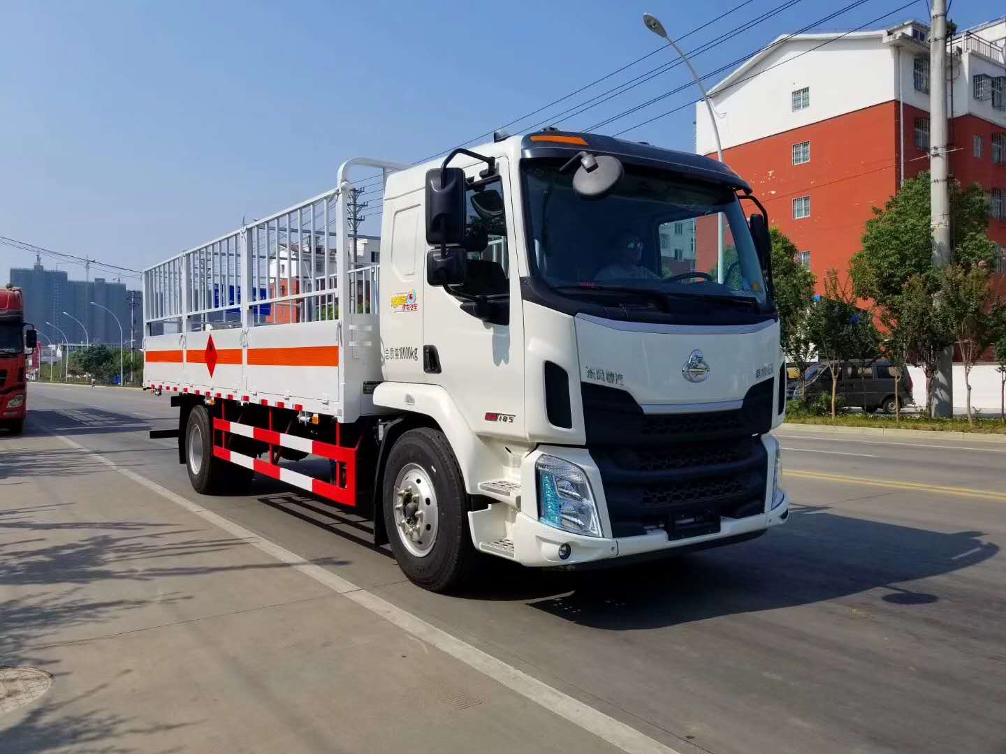 東風(fēng)柳汽乘龍M3駕駛室,原廠危化底盤,5100MM軸距,法士特8檔變速箱,玉柴185馬力發(fā)動(dòng)機(jī),8噸后橋,10.00R20鋼絲胎,原廠空調(diào),ABS,限速80,前盤制動(dòng),排氣管前置,斷氣剎,方向助力,中控鎖,電動(dòng)門窗,皮質(zhì)氣囊座椅。整車尺寸:9000×2550×2950;廂體尺寸:6800×2430×600。嚴(yán)格按照公告尺寸制作,邊2底5材質(zhì),底板上鋪靜電膠皮,側(cè)板上帶可卸式高欄,配備滅火器,三角頂燈,靜電拖帶等,嚴(yán)格按照國家危險(xiǎn)品法規(guī)進(jìn)行“易燃?xì)怏w”標(biāo)識(shí)粘貼等。