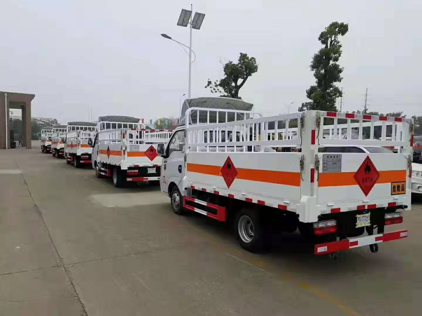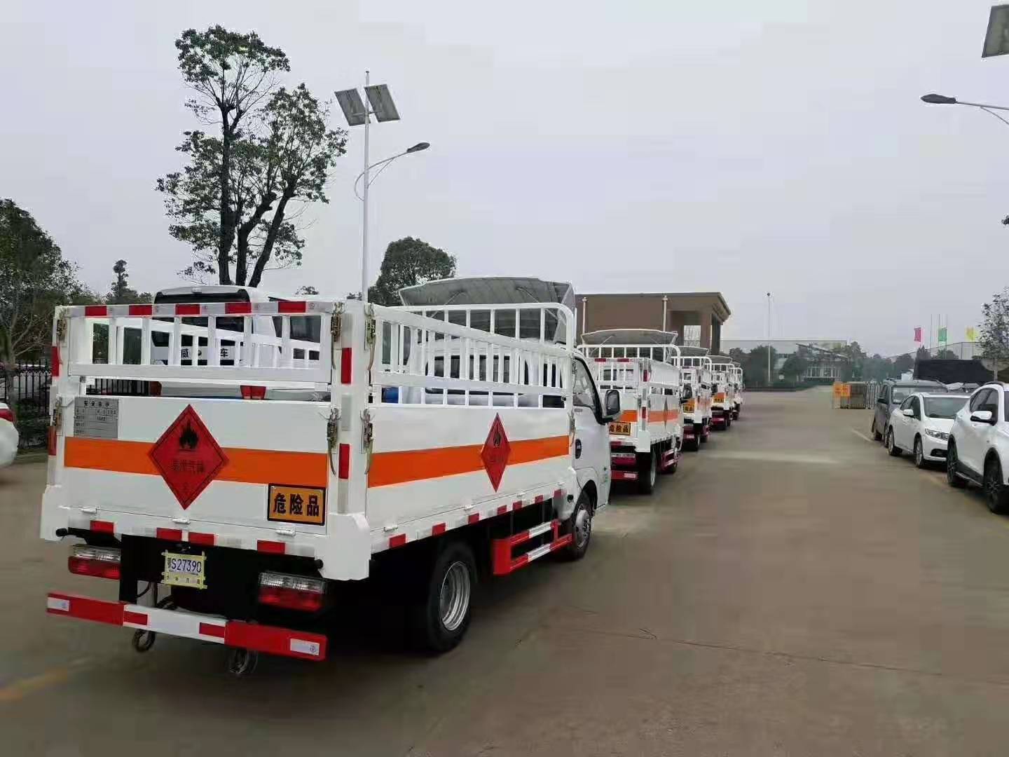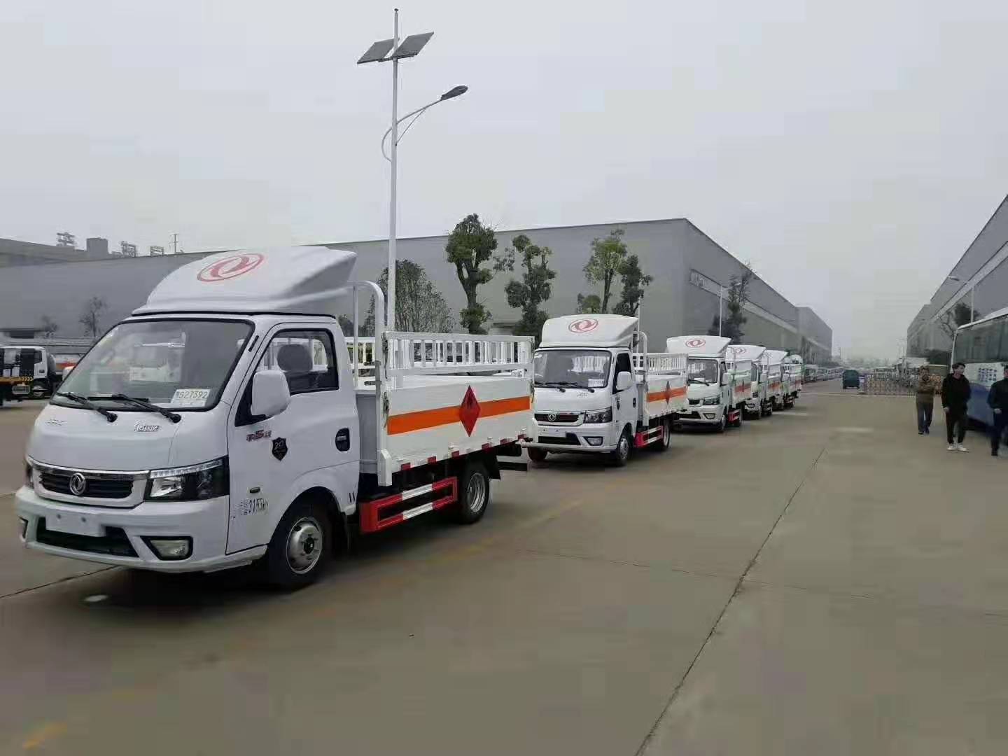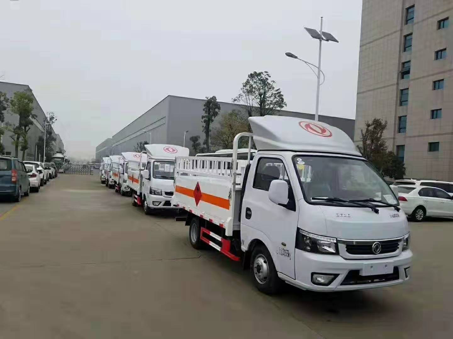 東風途逸易燃氣瓶運輸車6臺一起發往內蒙古,國六排放,廂體尺寸:3000*1650*550,采用柳州五菱112馬力發動機,以下是具體發車實拍: