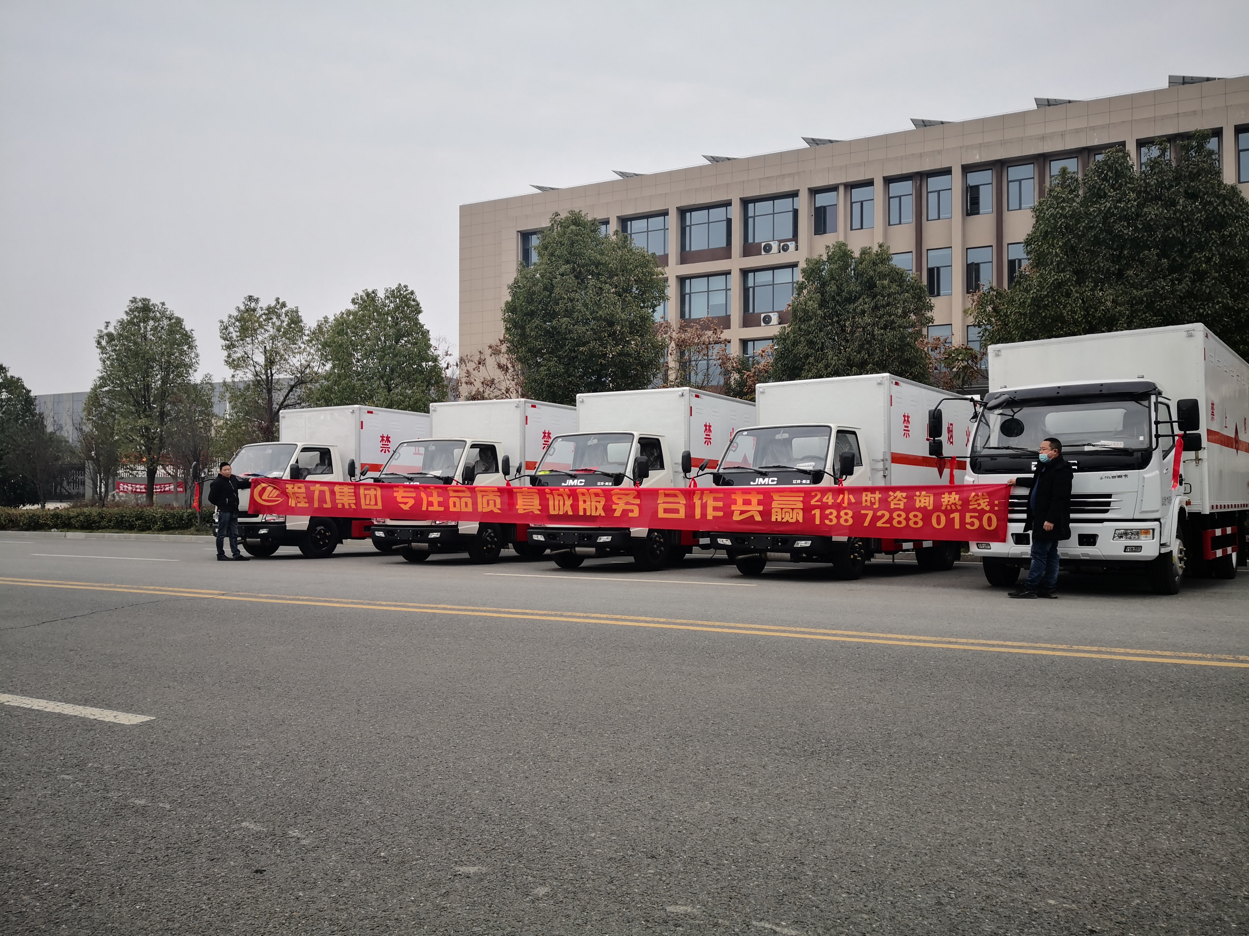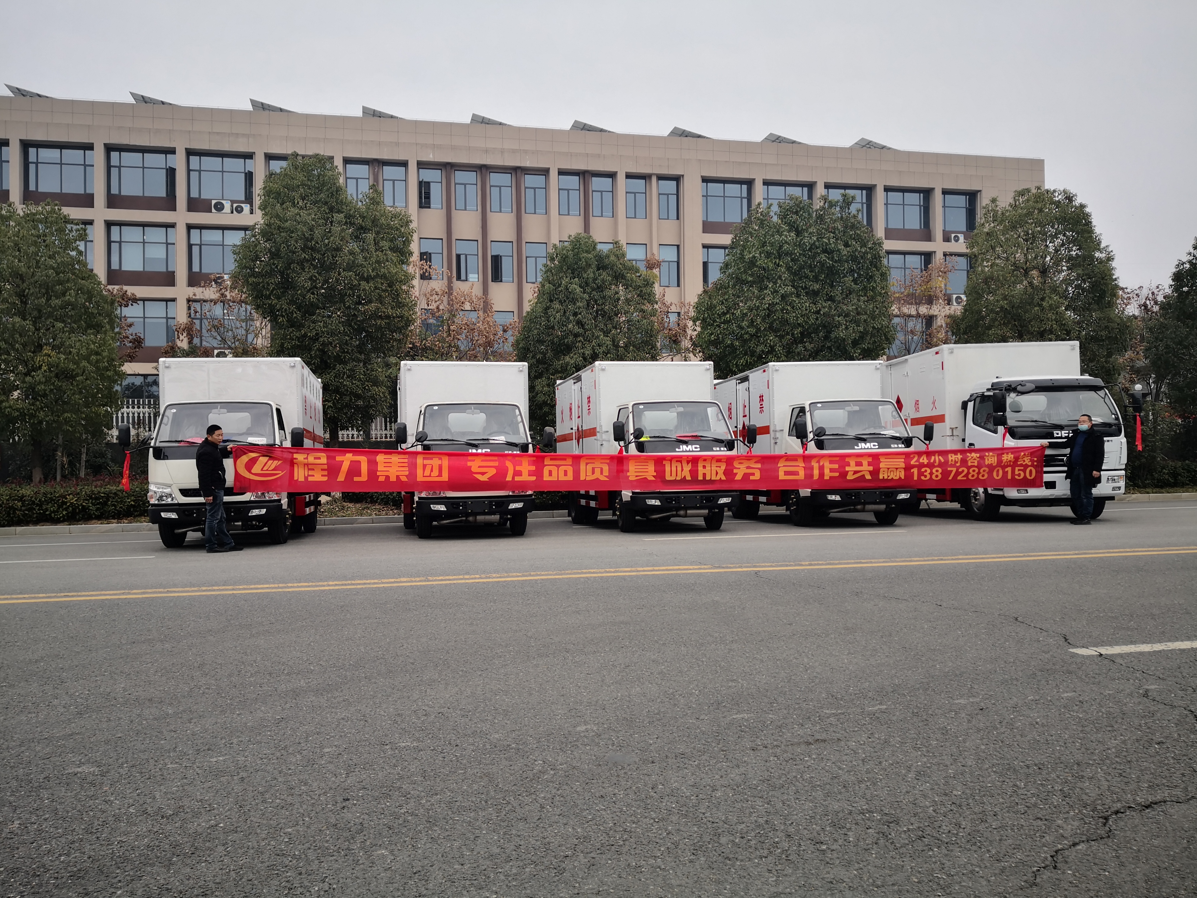 三類危險品運輸一直是市場上運輸量非常大的種類,因而購買三類危險品車的客戶也非常多,尤其是年底忙碌旺季,很多客戶會選擇增加車輛方便更好地進行運輸。天津李總從事三類危險品運輸多年,因公司需要,在我司自提了五臺危險品車(分別為4臺江鈴危險品車和1臺東風大多利卡危險品車),以下是詳細發(fā)車實拍:
