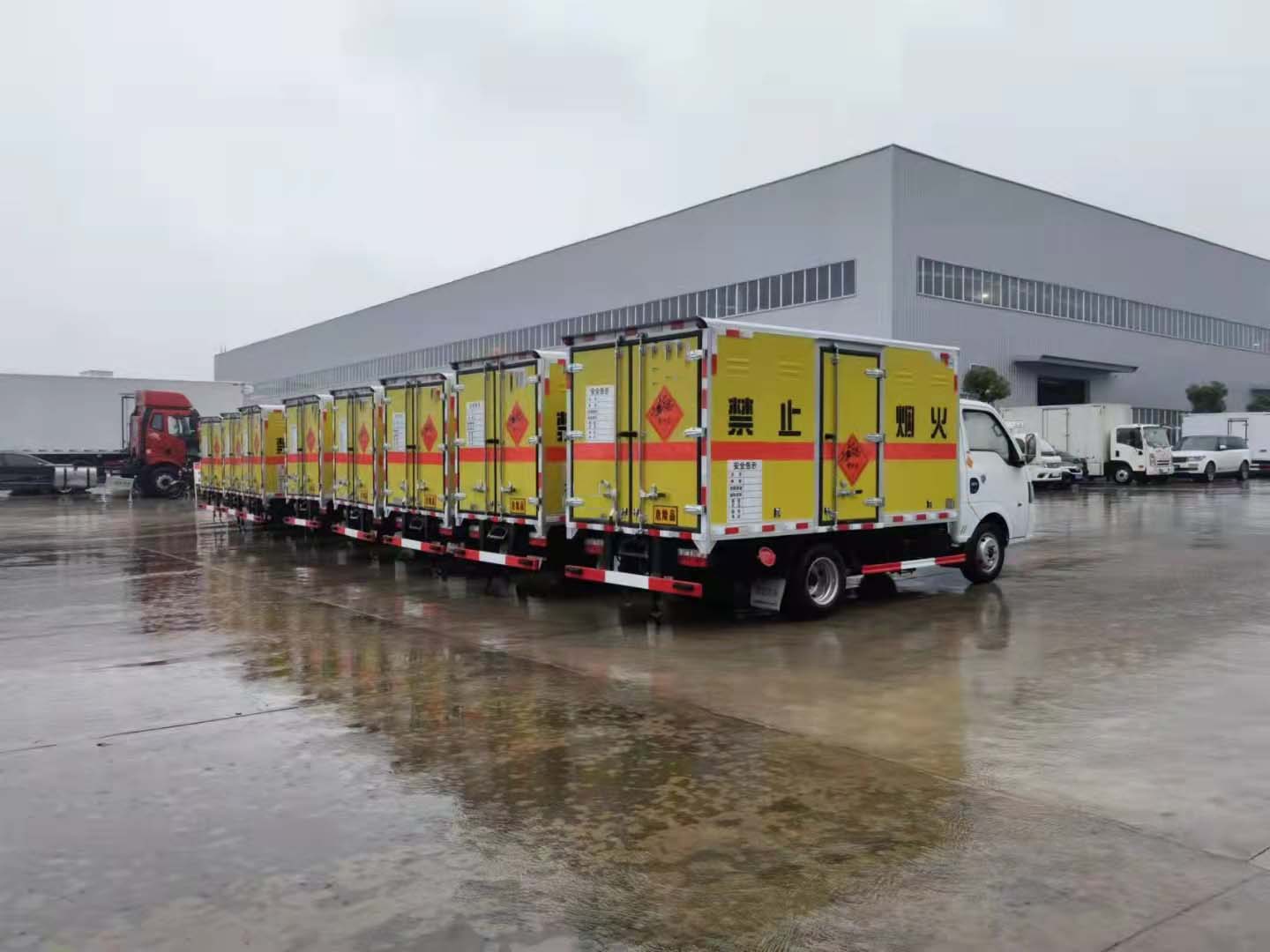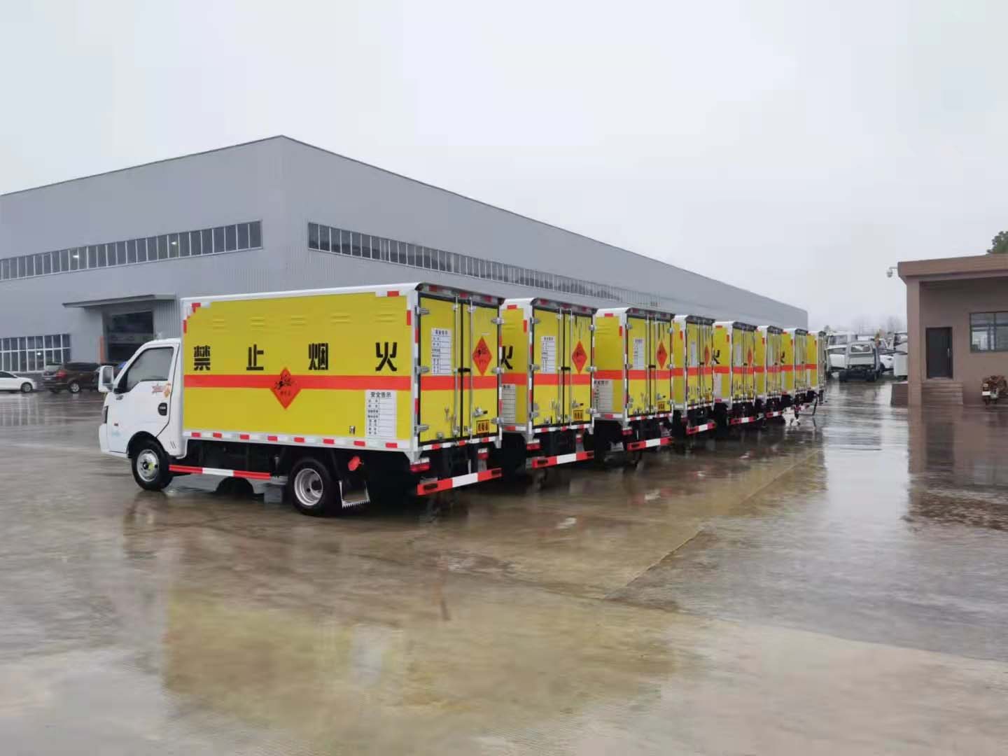 爆破危化品配送都少不了專用的車輛,尤其是城區車輛配送,為了方便運輸客戶選擇的都是能進城藍牌車型,以下是重慶李總批量訂購的東風途逸10臺爆破運輸車發車實拍: