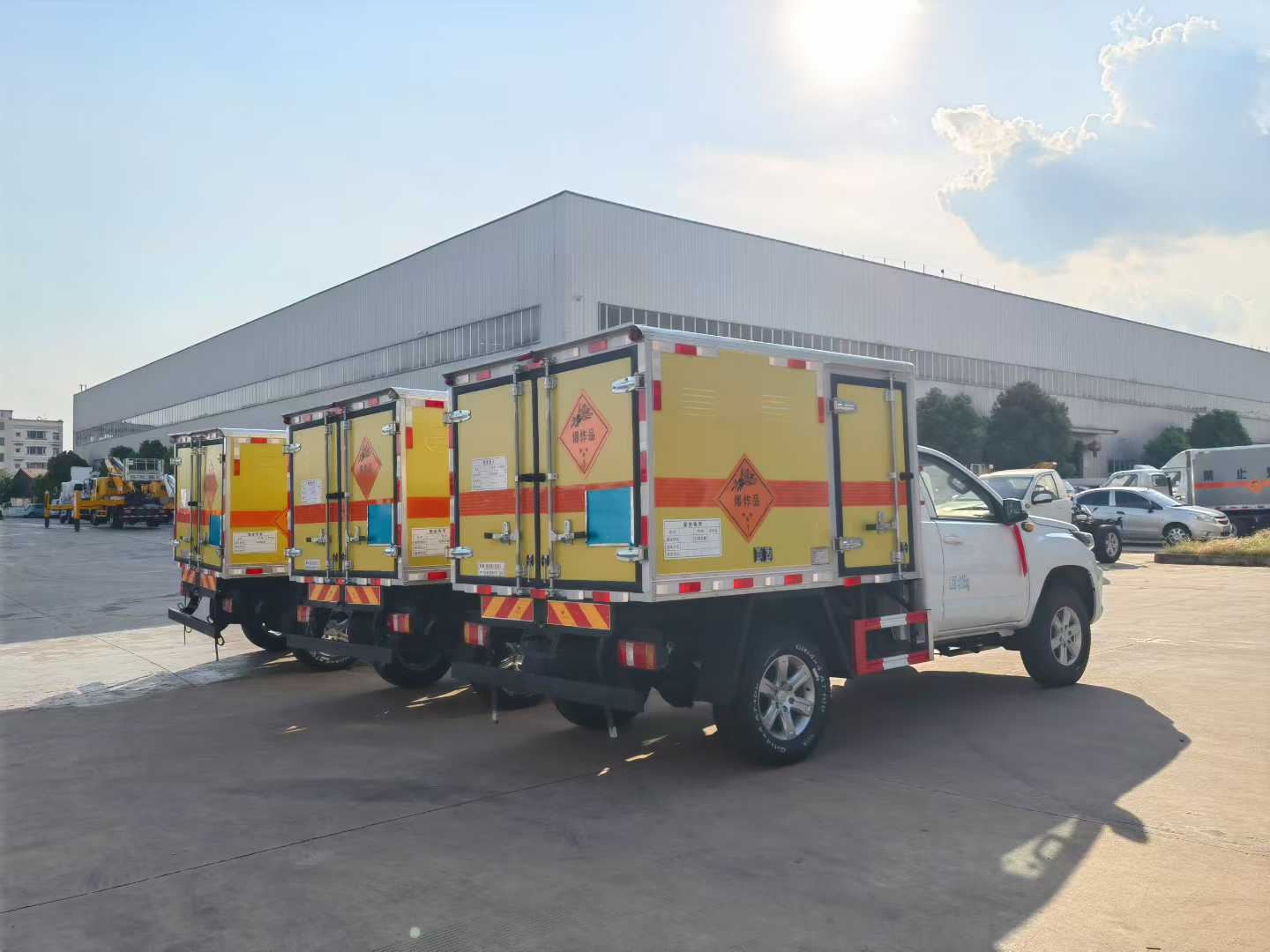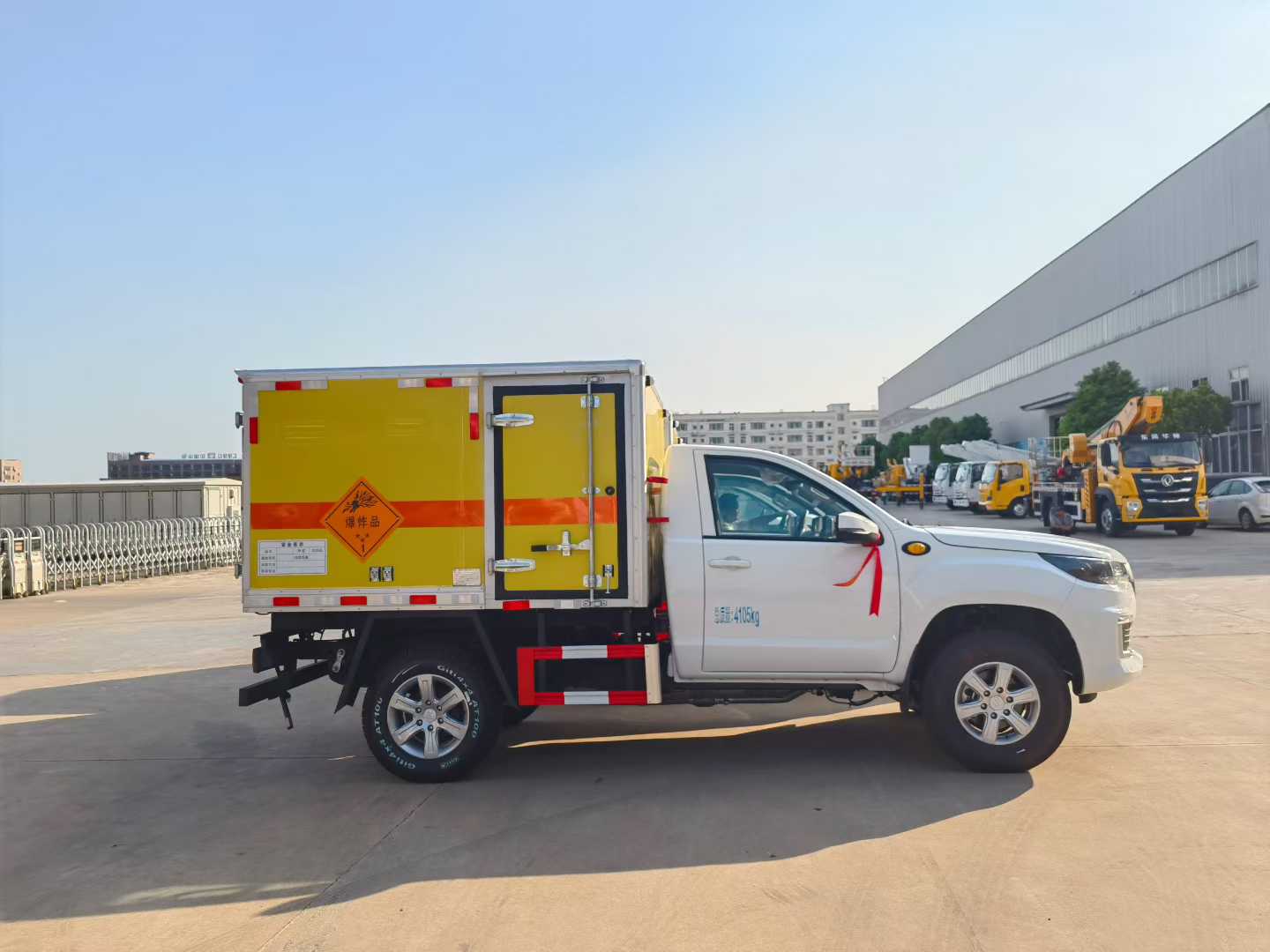福田將軍皮卡爆破器材運輸車是目前市場上容量非常大的皮卡,額載1.5噸,礦區爆破專用。貨廂尺寸:2200*1850*1250mm。搭載康明斯柴油2.5T發動機(158馬力116KW) ,格特拉克6檔變速箱。匹配 6MT 變速箱,采用雙錐面同步器設計,換擋行程縮短至 85mm,結合液壓分離軸承,實現輕便精準的換擋體驗。四驅版本配備電控分時四驅系統,可在 2H/4H/4L 模式間快速切換,4L 模式下扭矩放大 2.48 倍,輕松應對 30° 陡坡攀爬。通過吐魯番高溫(45℃)、昆侖山高海拔(5200m)和黑河高寒(-40℃)三重極端環境驗證,發動機故障率低于 0.5 次 / 萬公里。