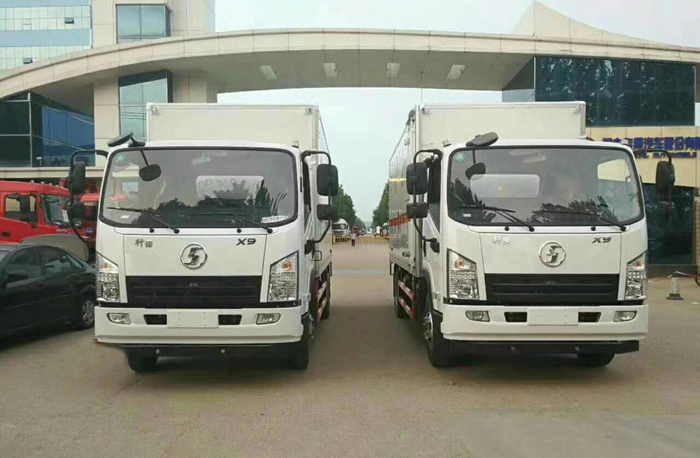 陜西劉總之前在程力購買過一臺躍進防爆車,因公司業務擴大,需增購兩臺防爆車?紤]到日常運輸的需要,程力陳經理為劉總介紹了陜汽軒德5.1米防爆車。陜汽軒德9系1995mm寬體豪華單排駕駛室,搭載濰柴130馬力柴油發動機,3800mm軸距,萬里揚六檔變速箱,192車架,7.50R16鋼絲胎,帶ABS,動力轉向,斷氣剎,前盤后鼓,限速裝置。整車尺寸(mm):6960×2110×3100,箱體尺寸(mm):5100×1970×1970。