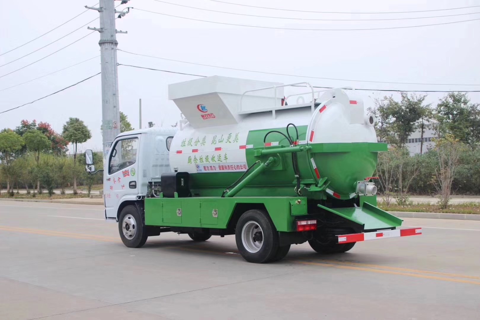 餐廚垃圾車,又稱餐余垃圾車余廚垃圾車或者泔水車,餐廚垃圾車是垃圾車中的一種,是用于收集和運輸生活垃圾、食品垃圾(泔水)及城市淤泥的專用車輛。餐廚垃圾車不僅優化了居民居住的環境衛生,減少了空氣中的餐廚垃圾臭味,減少孳生蟑螂、細菌的可能, 改善了環衛作業環境,減少垃圾的四處分散造成的污染。