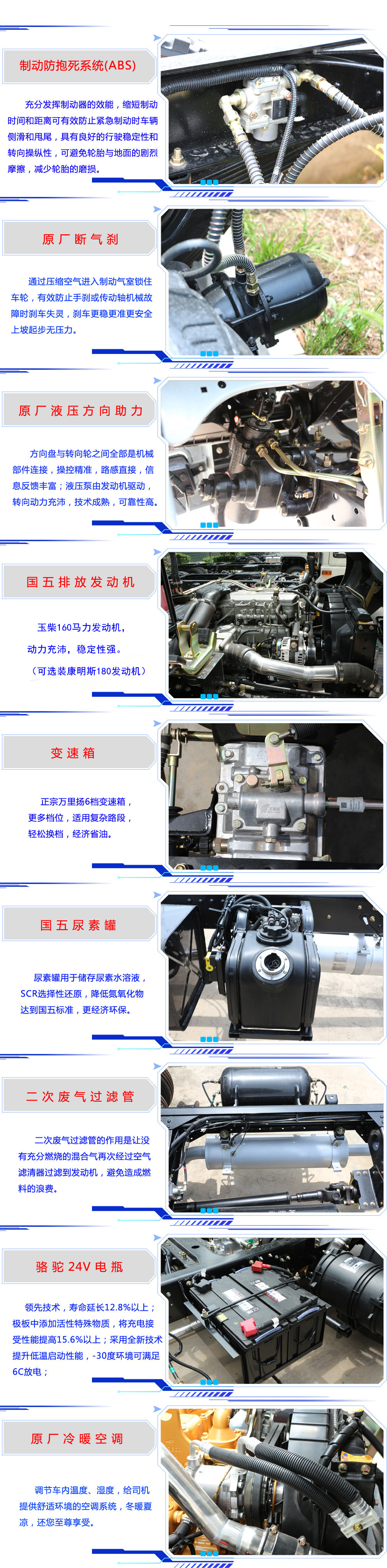底盤配置:東風多利卡3950軸距底盤D9車身,六檔/小八檔變速箱,9噸后橋,9.000R20鋼絲胎,氣剎,方向助力,ABS,玉柴160馬力/康明斯180馬力。