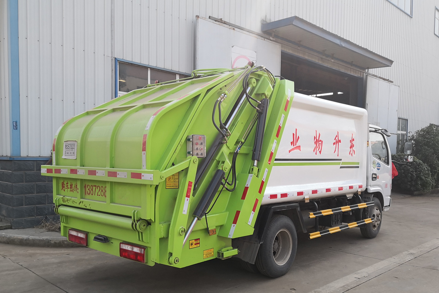壓縮式垃圾車采用機電液一體化技術,借助機、電、液聯合自動控制系統,通過車廂、填裝器和推鏟等專用裝置,實現垃圾倒入、壓碎或壓扁、強力裝填,把垃圾擠入車廂并壓實和推卸。其主要特點是垃圾收集方式簡便、高效、具有自動反復壓縮以及蠕動壓縮功能,壓縮比高,裝載質量大,作業自動化,動力性、環保性好,整車利用效率高。