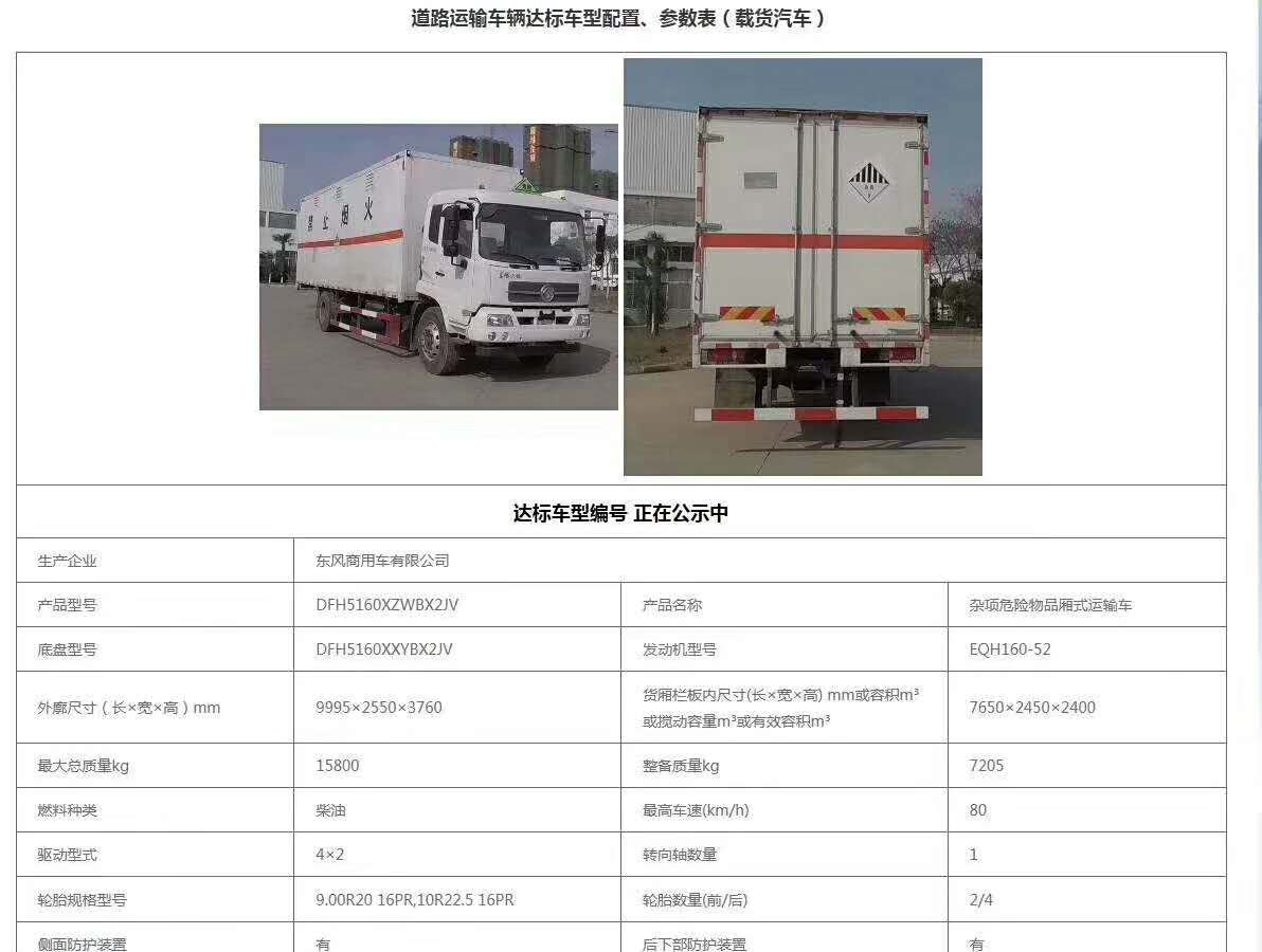在之前我們公示了關于躍進品牌安全達標的危險品車,今天為大家公示東風品牌安全達標車型:
