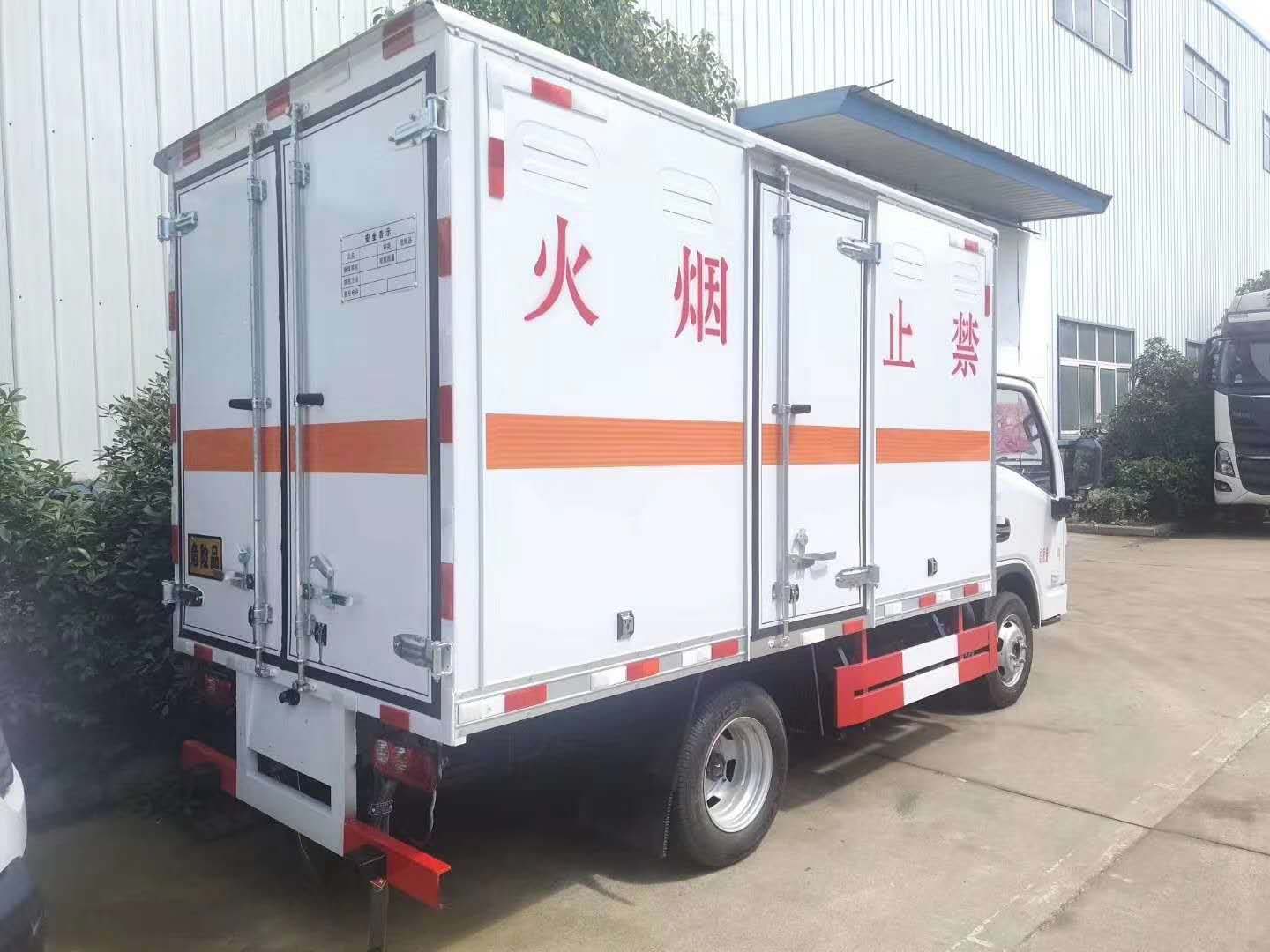 福運S80國六柴油危險品車嚴(yán)格按照公告尺寸制作,外板采用1mm厚冷軋板有一次性成型的百葉窗,內(nèi)飾為導(dǎo)電性能良好的鋁板有透氣孔,內(nèi)襯為矩形管骨架牢靠穩(wěn)定,內(nèi)部填充為透氣防潮阻燃的擠塑板,四種材料經(jīng)現(xiàn)代工藝復(fù)合而成,廂體外部上下鋁合金型材包邊,底板和車廂前下部鋪橡膠皮,后門雙開,右側(cè)中部單開門,內(nèi)部有固定貨物的臥環(huán),車輛外部有靜電帶、滅火器、防火罩,車廂內(nèi)安裝煙霧報警器和門防盜報警器,嚴(yán)格按照國家危險品相關(guān)法規(guī)張貼。