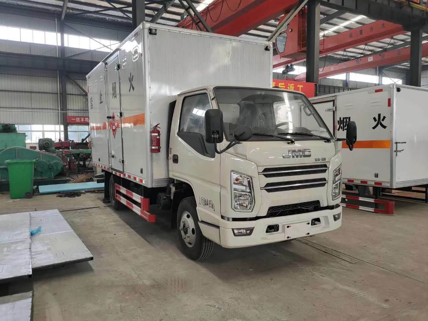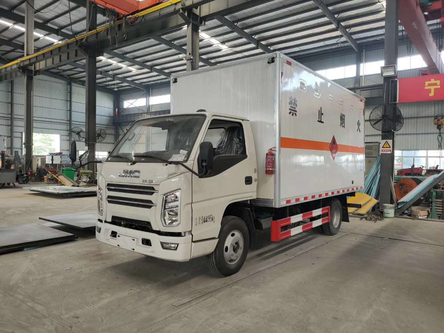 江鈴國六危險品車上裝配置:嚴格按照公告尺寸制作,外板采用1mm厚冷軋板有一次性成型的百葉窗,內飾為導電性能良好的鋁板有透氣孔,內襯為矩形管骨架牢靠穩定,內部填充為透氣防潮阻燃的擠塑板,四周種材料經現代工藝復合而成,廂體外部上下鋁合金型材包邊,底板和車廂前下部鋪橡膠皮,后門雙開,右側中部單開門,內部有固定貨物的臥環,車輛外部有靜電帶、滅火器、防火罩,車廂內安裝煙霧報警器和門防盜報警器,嚴格按照國家危險品相關法規張貼。