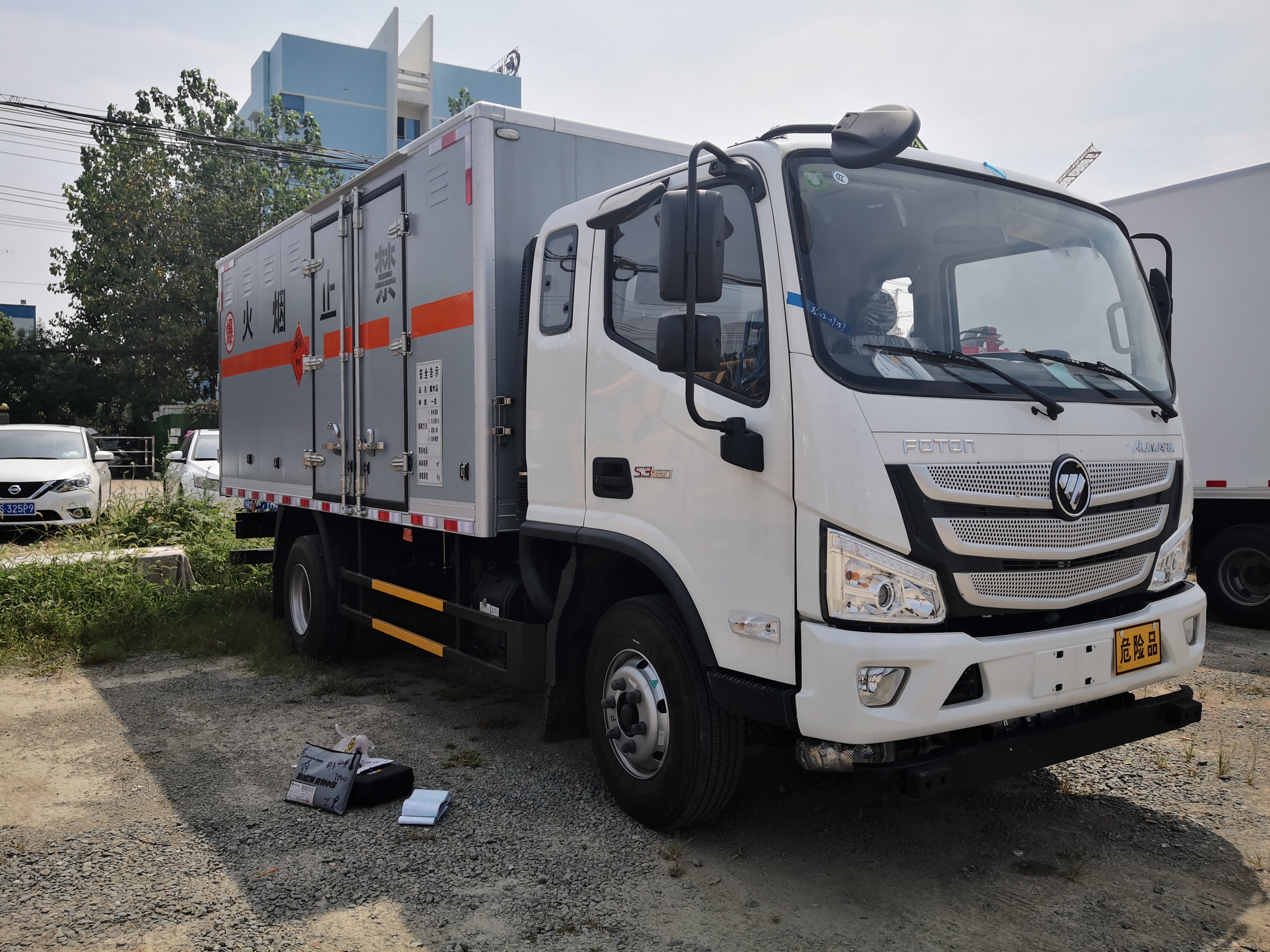福田歐馬可排半4米7防爆車采用福田歐馬可原廠危貨底盤,排半駕駛室,帶中控鎖、電動門窗,原廠空調,3360mm軸距,采用康明斯156馬力發動機,省油中的神器。該車配置有9.5R17.5 16PR防爆胎,帶安全帶未系提醒,剎車襯片預警提示,符合2020年新規。