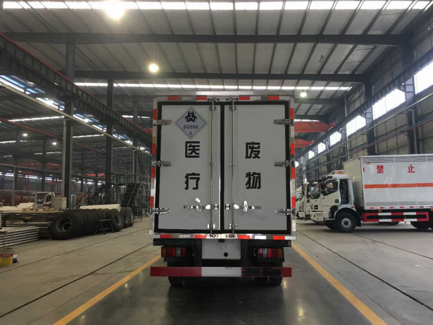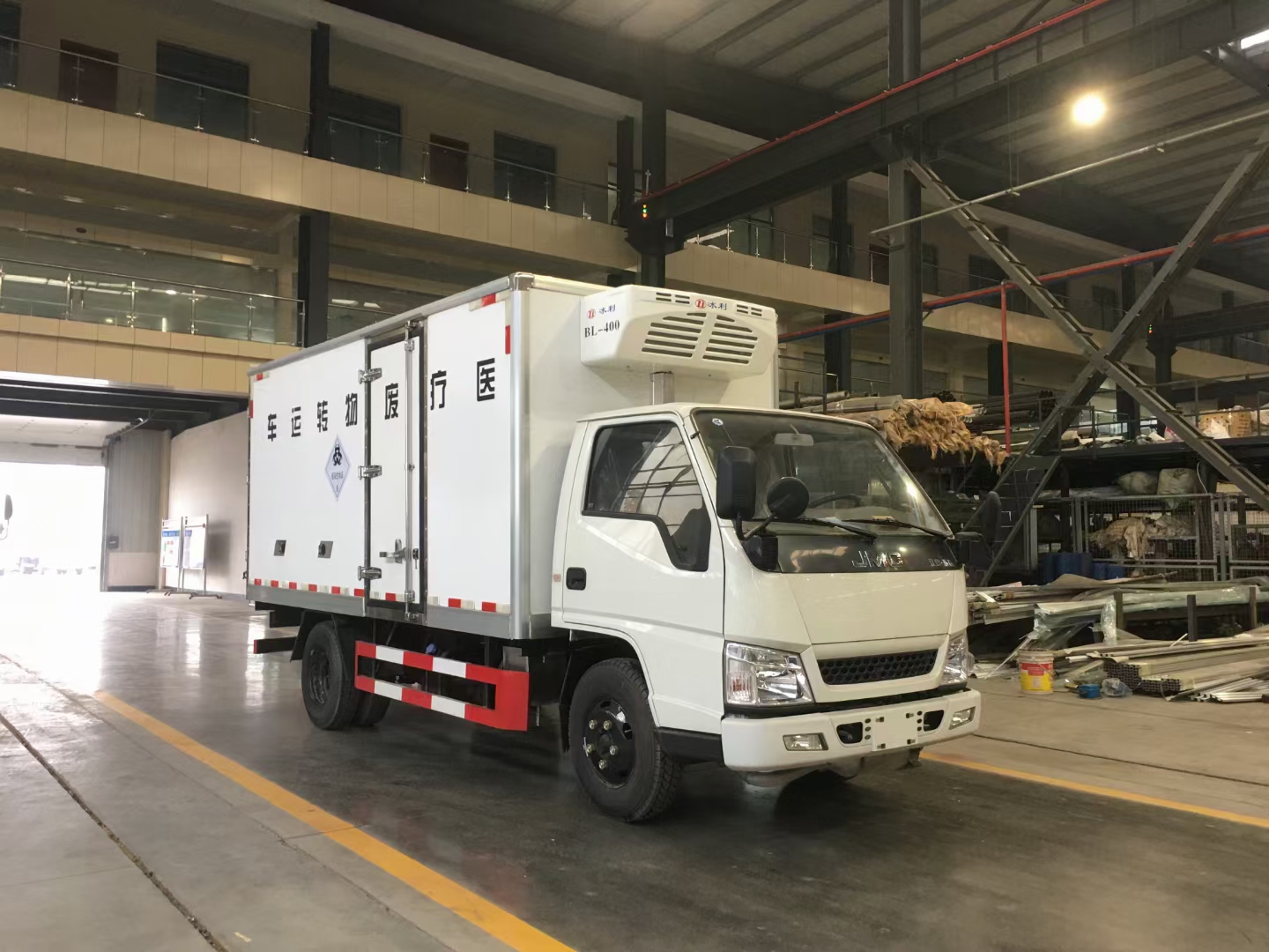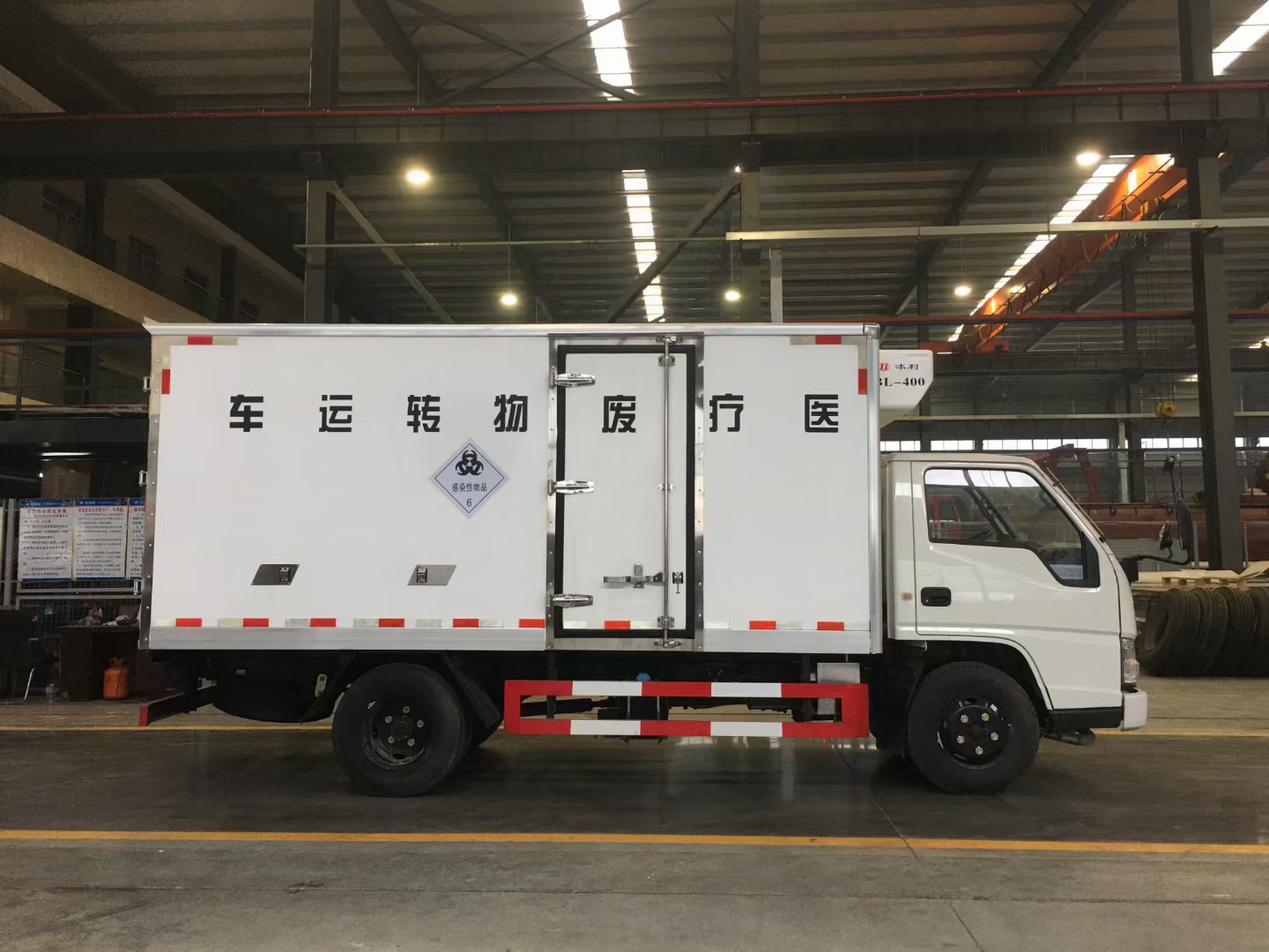 江鈴醫療廢物轉運車大量現貨。配置:底盤采用江鈴順達原廠危化底盤,江鈴115馬力國五排放標準發動機,前盤制動,ABS,限速裝置,排氣管前置(帶防火帽),7.00R16鋼絲輪胎,5檔變速箱,安全帶未系提醒,前輪胎防爆胎裝置,剎車片磨損報警。廂體材質采用內不銹鋼(可起到防腐作用),外玻璃鋼,中間采用優質高強度方鋼和聚氨酯保溫材料,廂體厚度8CM,門栓,門鎖,門飾條及廂體周邊包角均為不銹鋼材質,后門雙開(標配側門)及門中門(該門采用內外不銹鋼材質制作)。配備紫外線殺毒燈,噴霧消毒,國產知名品牌零下5℃制冷機組,滅火器,三角頂燈,靜電拖帶等隨車工具。