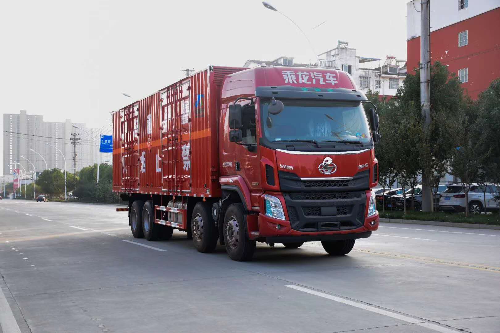 柳汽四軸瓦楞板危險品廂式運輸車采用H73D駕駛室,軸距2050+4400+1350,玉柴400馬力發動機,12R22.5胎,12檔變速箱,400L鋁合金油箱,電動液壓翻轉、ABS、中控鎖、自動調整臂前置排氣管、前輪防爆胎裝置、排氣火花熄滅器、ECU限速裝置(限速80km/h)、駕駛室電源總開關,整車尺寸:11980×2550×3980mm;廂體尺寸9500×2420×2500mm。