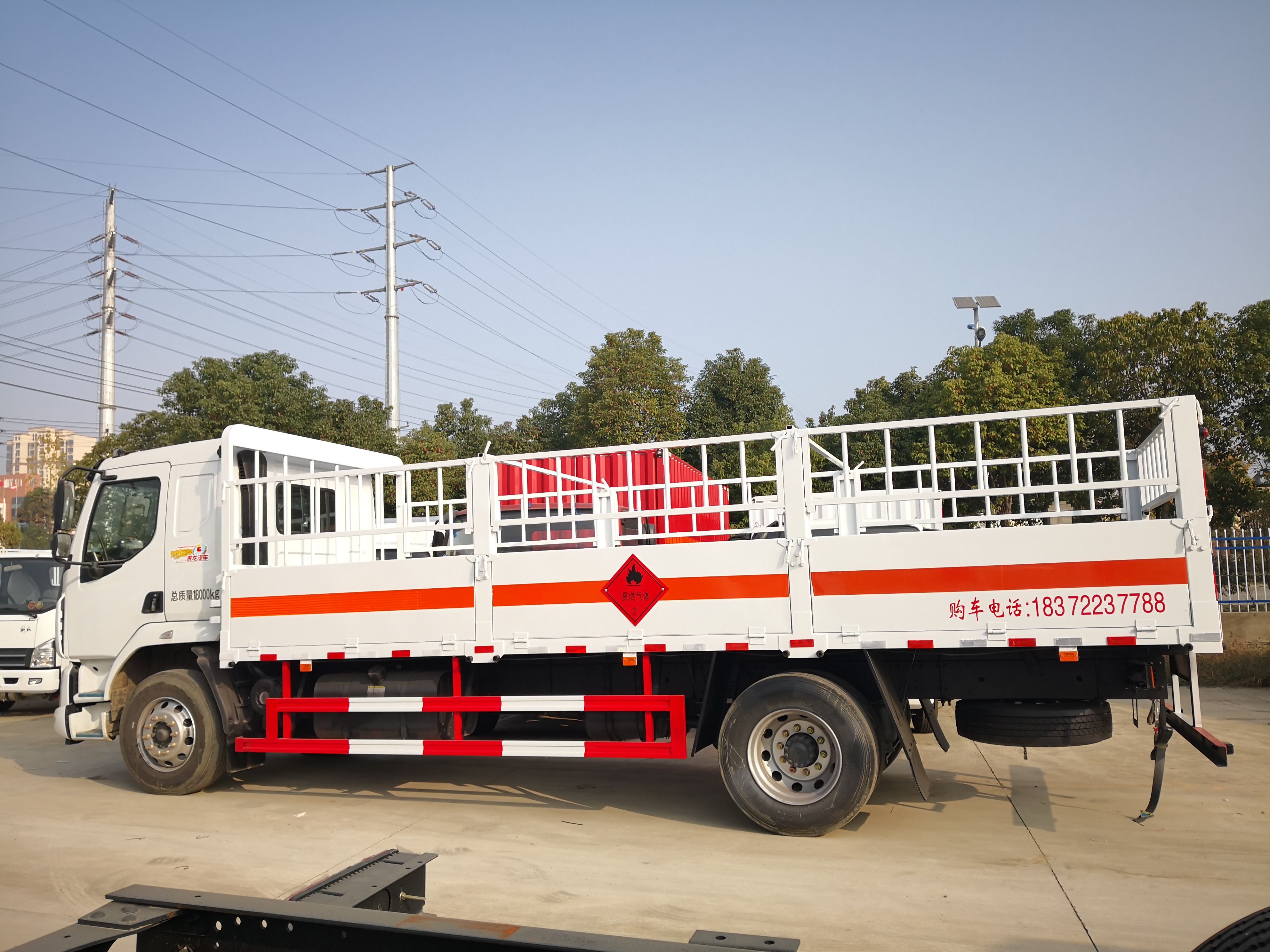 采用東風(fēng)柳汽乘龍M3駕駛室,原廠危險(xiǎn)品車底盤,軸距5100mm,玉柴185馬力發(fā)動機(jī),法士特8檔變速箱,8噸后橋,10.00R20鋼絲胎,帶原廠空調(diào)、帶ABS、帶倒車影像、帶工具箱,限速80km/h。帶前盤制動、排氣管前置,帶方向助力、中控鎖、電動門窗。整車尺寸:9000×2550×2950mm,貨箱尺寸:6800×2430×600mm。嚴(yán)格按照公告尺寸制作,底板上鋪靜電膠皮,側(cè)板上帶可拆卸式高欄。配備滅火器、三角頂燈,靜電拖帶,嚴(yán)格按照國家危險(xiǎn)品法規(guī)粘貼標(biāo)識.隨車提供整車合格證、機(jī)動車上戶發(fā)票,保修手冊、隨車工具。