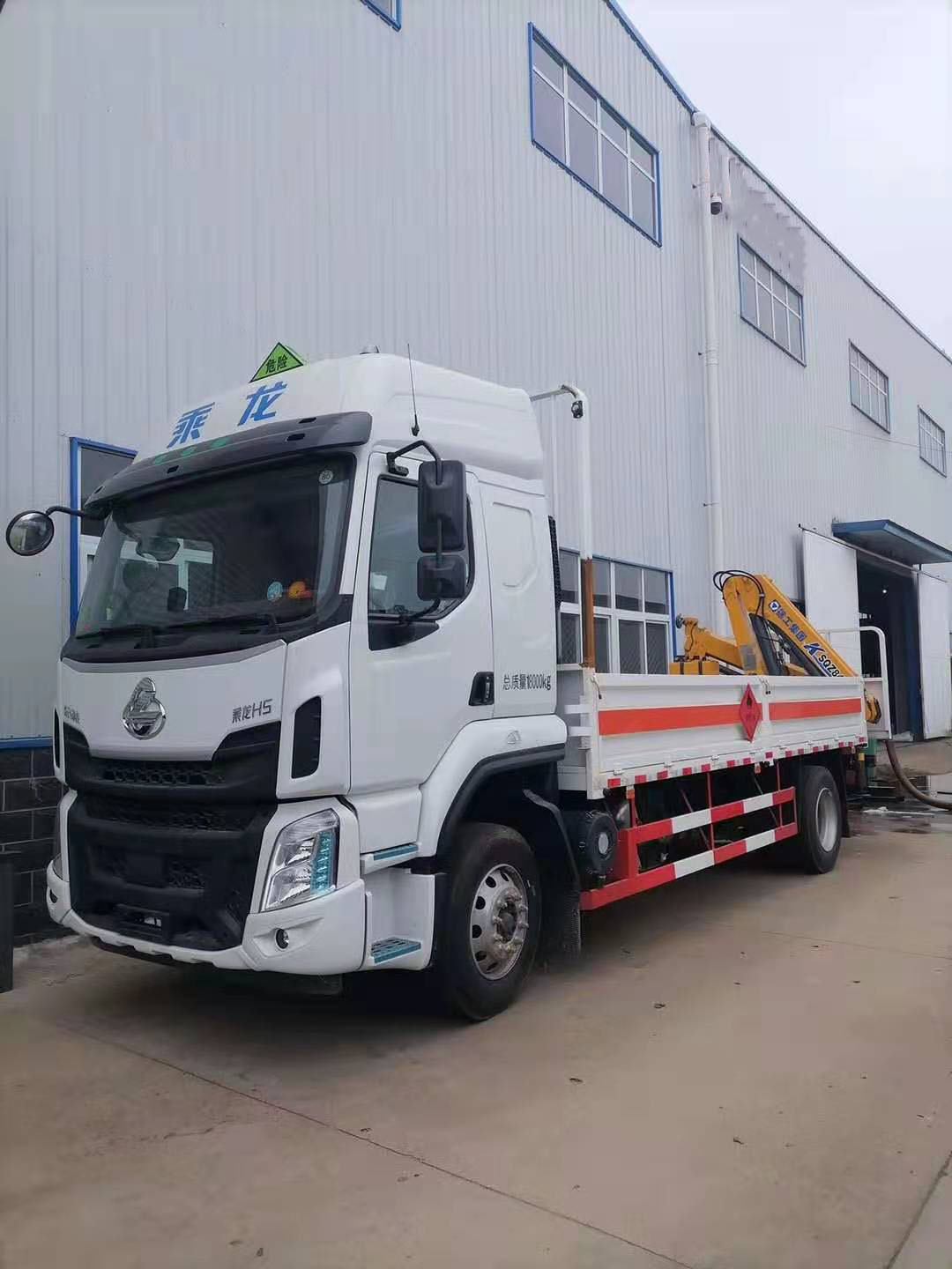 柳汽國六帶吊氣瓶運輸車嚴格按照公告尺寸制作,邊2底5材質,底板上鋪靜電膠皮,帶可卸式高欄,配備滅火器,三角頂燈,靜電拖帶等,嚴格按照國家危險品法規進行“易燃氣體”標識粘貼等