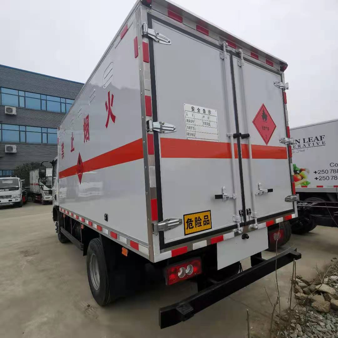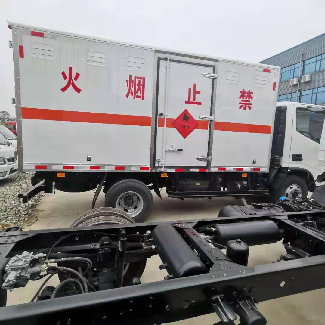 福田奧鈴黃牌4.5噸防爆車采用福田奧鈴危險品車底盤,寬體駕駛室,康明斯 141 馬 力發動機,6 檔變速箱,3360mm 軸距,7.50R16 鋼絲胎,原廠空調, 動轉,斷氣剎。廂體嚴格按照公告尺寸制作,外板采用 1mm 厚冷軋板有一次性 成型的百葉窗,內飾為導電性能良好的鋁板有透氣孔,內襯為矩形管 骨架牢靠穩定,內部填充為透氣防潮阻燃的擠塑板,四種材料經現代 工藝復合而成,廂體外部上下鋁合金型材包邊,底板和車廂前下部鋪 橡膠皮,后門雙開,右側中部單開門,內部有固定貨物的臥環,車輛 外部有靜電帶、滅火器、防火罩,車廂內安裝煙霧報警器和門防盜報 警器,嚴格按照國家危險品相關法規張貼。