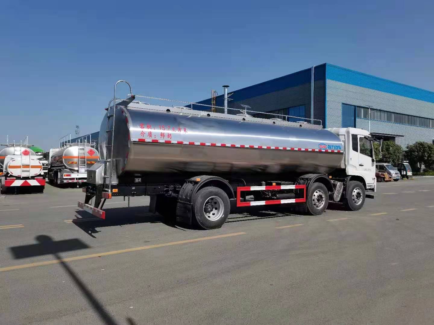 鮮奶運輸一直是針對食品級運輸來說非常重要的車型,該車又稱為奶罐車、牛奶運輸車、牛奶保鮮車、液奶運輸車。該車可運輸新鮮牛奶、羊奶,新鮮果汁、飲用水,食用油,啤酒,冰淇淋、奶油等各處液體食品。