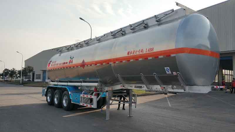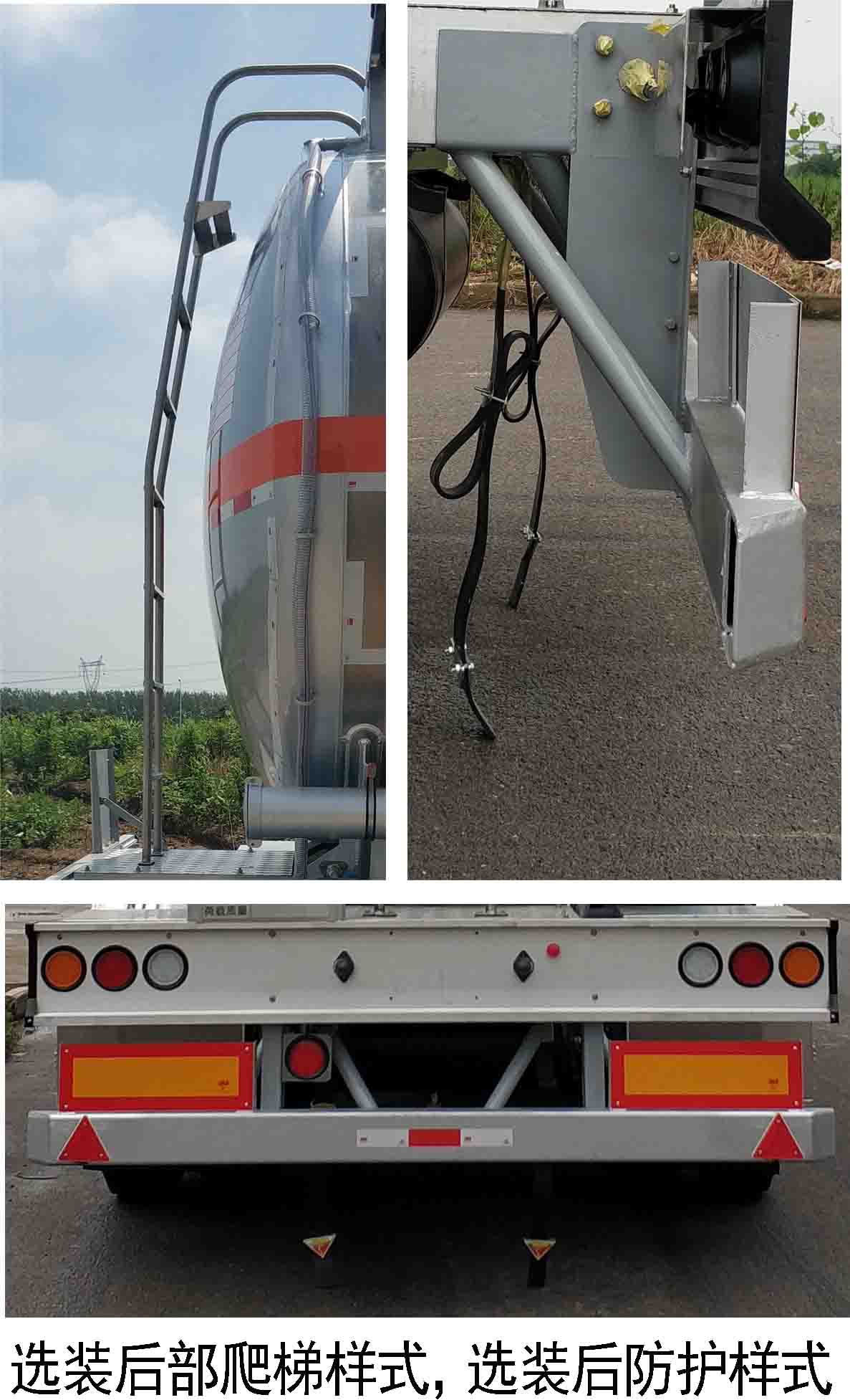 48方陜汽鋁合金半掛油車罐體采用7.0球型封頭,配4寸鋁合金管路,位于右側中部,配聚四氟乙烯密封墊。整車尺寸(mm)12240×2550×3990mm。車架 鋁合金型材,一體式車架牽引銷 50# 裝配式支腿,28T、碳鋼、聯(lián)動9*22.5輪胎。采用永力泰12T 空氣懸掛(無前橋提升),配套1根非ABS碟剎軸(方軸,適配鋁合金輪輞,配加長螺栓)、2根ABS碟剎軸(方軸,適配鋁合金輪輞,配加長螺栓)、永力泰空懸氣路控制系統(tǒng)QPN301T2一套。罐體兩側貼易燃液體、爆字貼(位于罐體中部、橙色反光帶之間),后封頭外圈粘貼全白標貼(中間粘貼紅白標貼),后封頭粘貼爆字貼,易燃液體標貼,安全告示貼紙,后部防護安裝安全告示鋁制牌,罐體側邊粘貼“嚴禁煙火”貼紙,罐體側面前后需粘貼“倒L”白色反光貼紙,軟管箱粘貼紅白標貼。