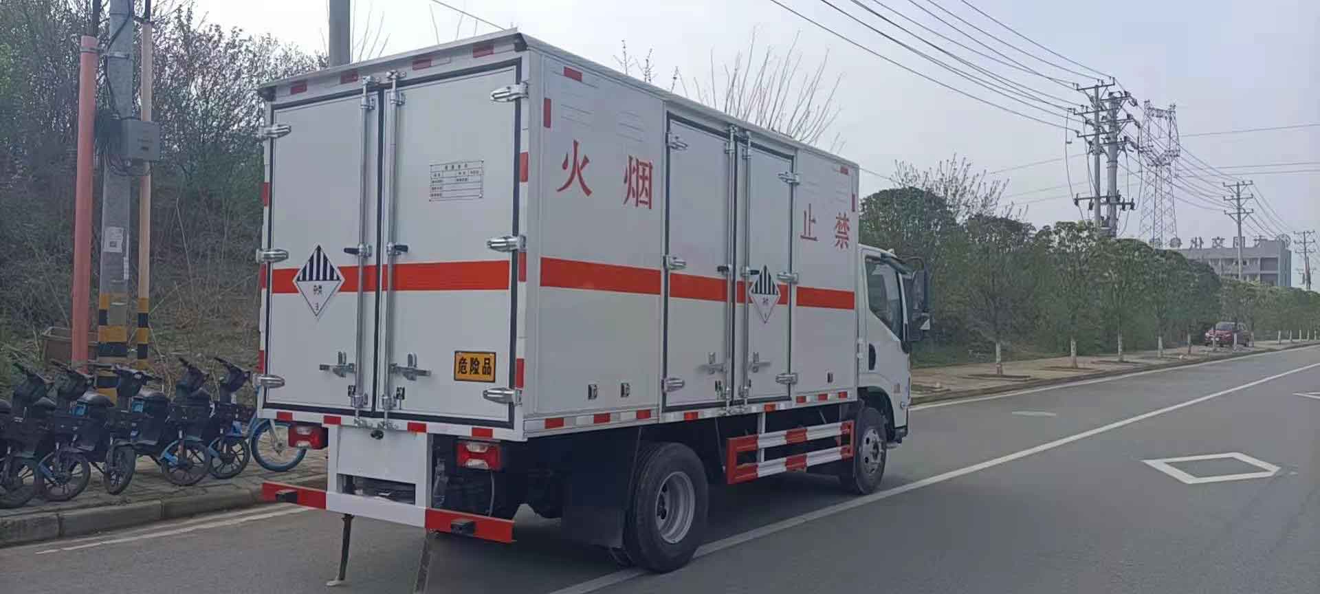 躍進C500寬體危險品車廂體為雙層金屬骨架結(jié)構(gòu),外冷軋鋼板內(nèi)飾鋁板,內(nèi)壁采用鋁合金板蒙面,夾層為隔熱阻燃材料填充,廂體內(nèi)部做通風窗口,廂體內(nèi)部做防靜電處理,廂體底部鋪導靜電膠板,車輛副梁配備導靜電帶,廂體內(nèi)襯壁裝單排臥環(huán),廂體內(nèi)頂部安裝氣體報警器,廂體安裝防盜報警器,隨車配備手提滅火器,危險品三角頂燈,防護帽等備,嚴格按照國家危險品法規(guī)進行易燃氣體標識粘貼等。隨車提供資料:機動車上戶發(fā)票,整車合格證,底盤合格證,隨車工具,服務手冊,保修手冊。