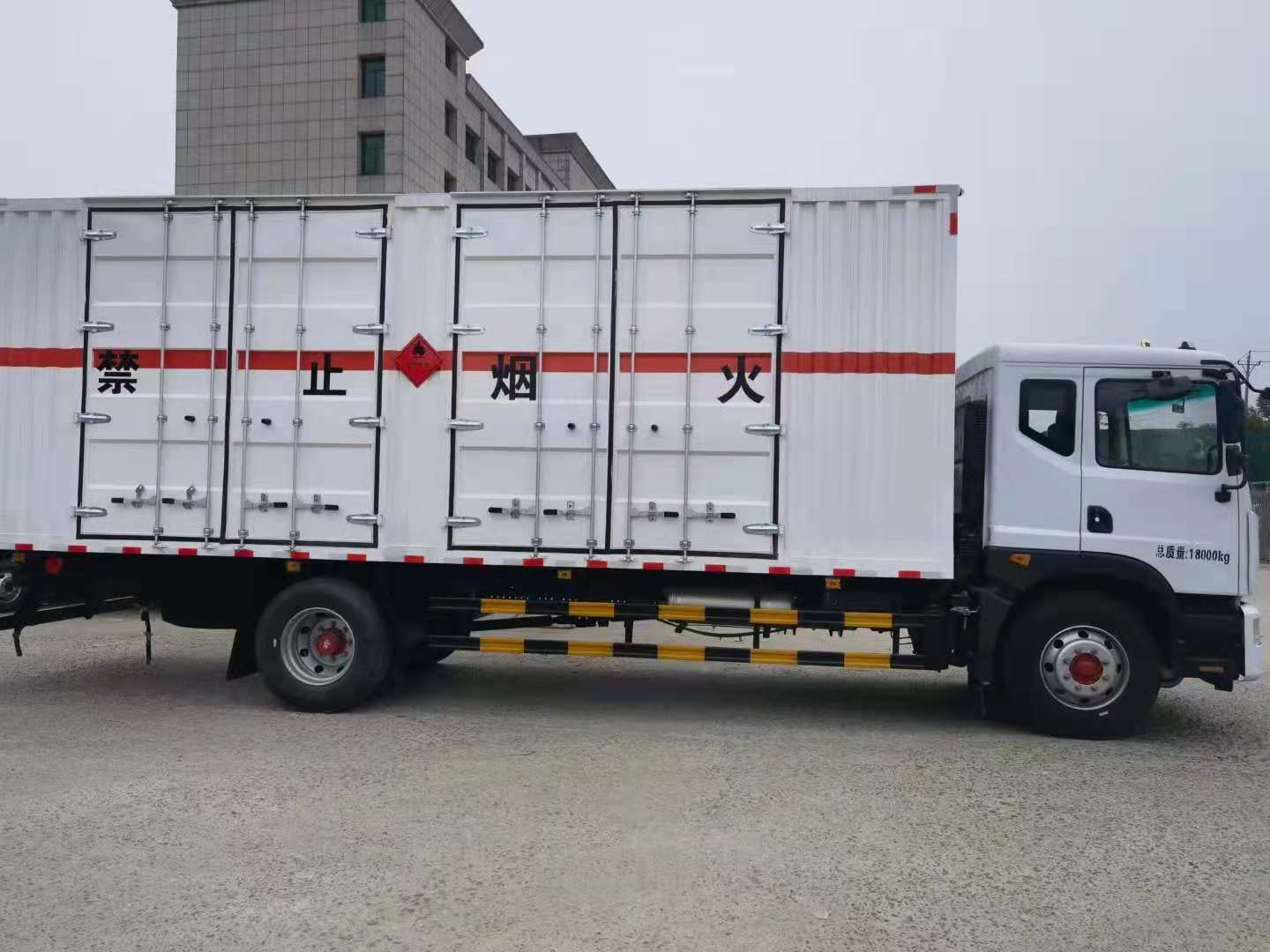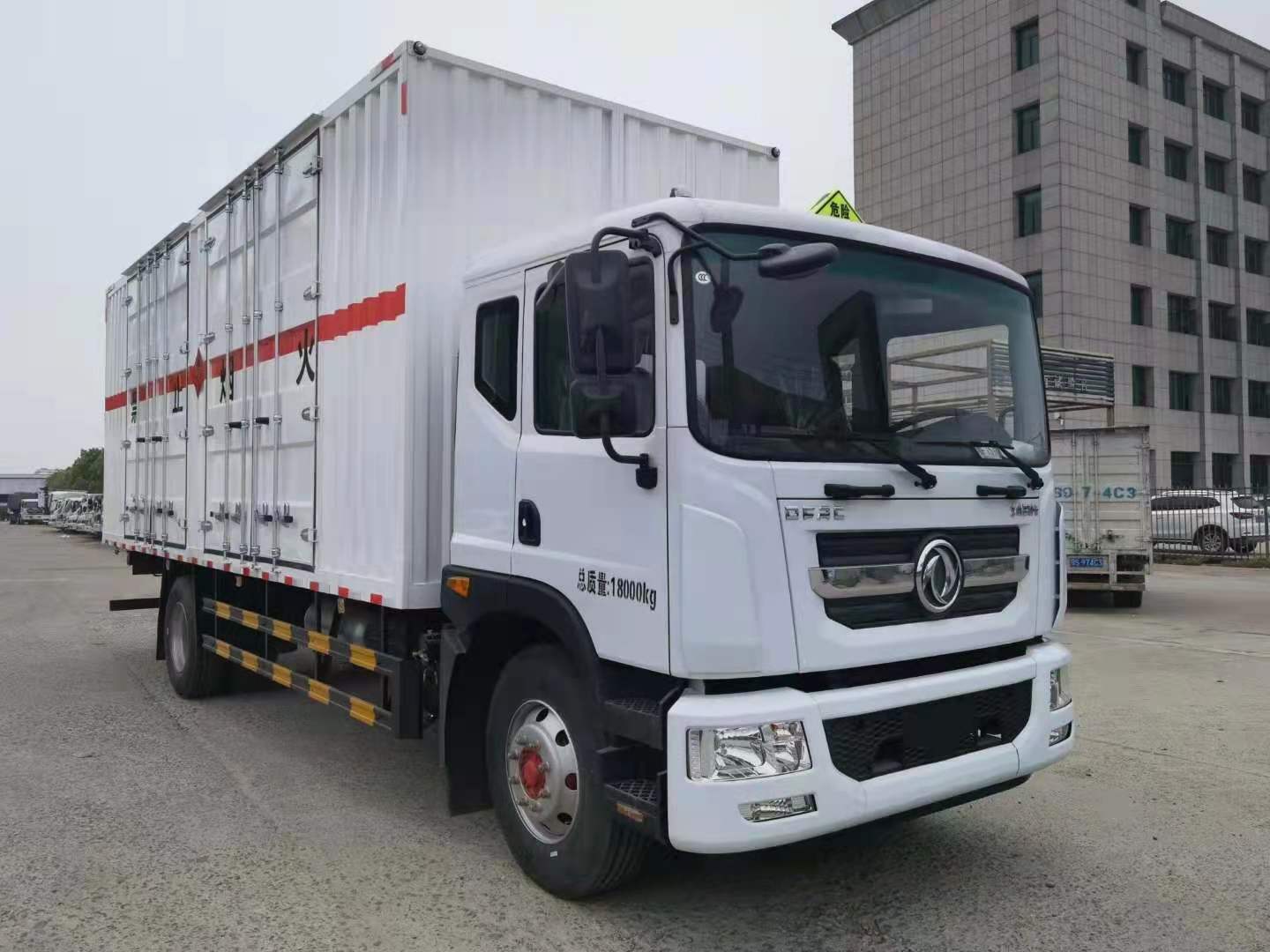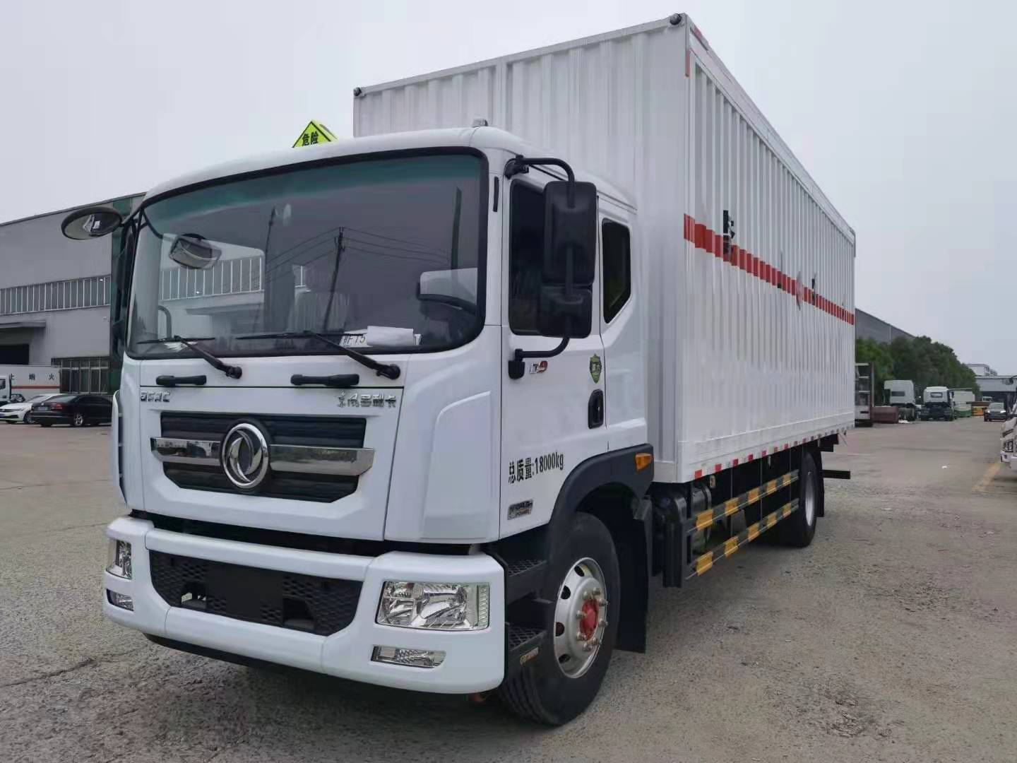 東風D9國六瓦楞板帶雙開側門危險品車采用東風D9專用危險品車底盤,康明斯220馬力的,4.5噸前橋,10噸后橋,250雙層大梁,法士特8檔,排氣管前置,帶車道偏離系統、剎車襯片報警提示、防碰撞預警提示,底盤為新標準的空氣懸架氣囊橋,國六廂體尺寸:7680X2400X2400(mm)。采用瓦楞板廂體制作,帶雙開雙側門,讓您裝卸貨物更方便。