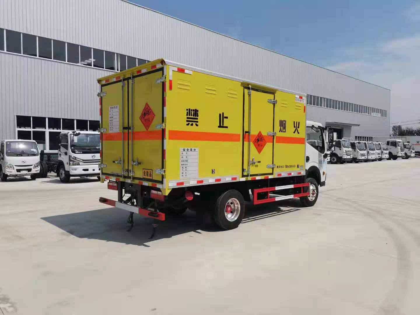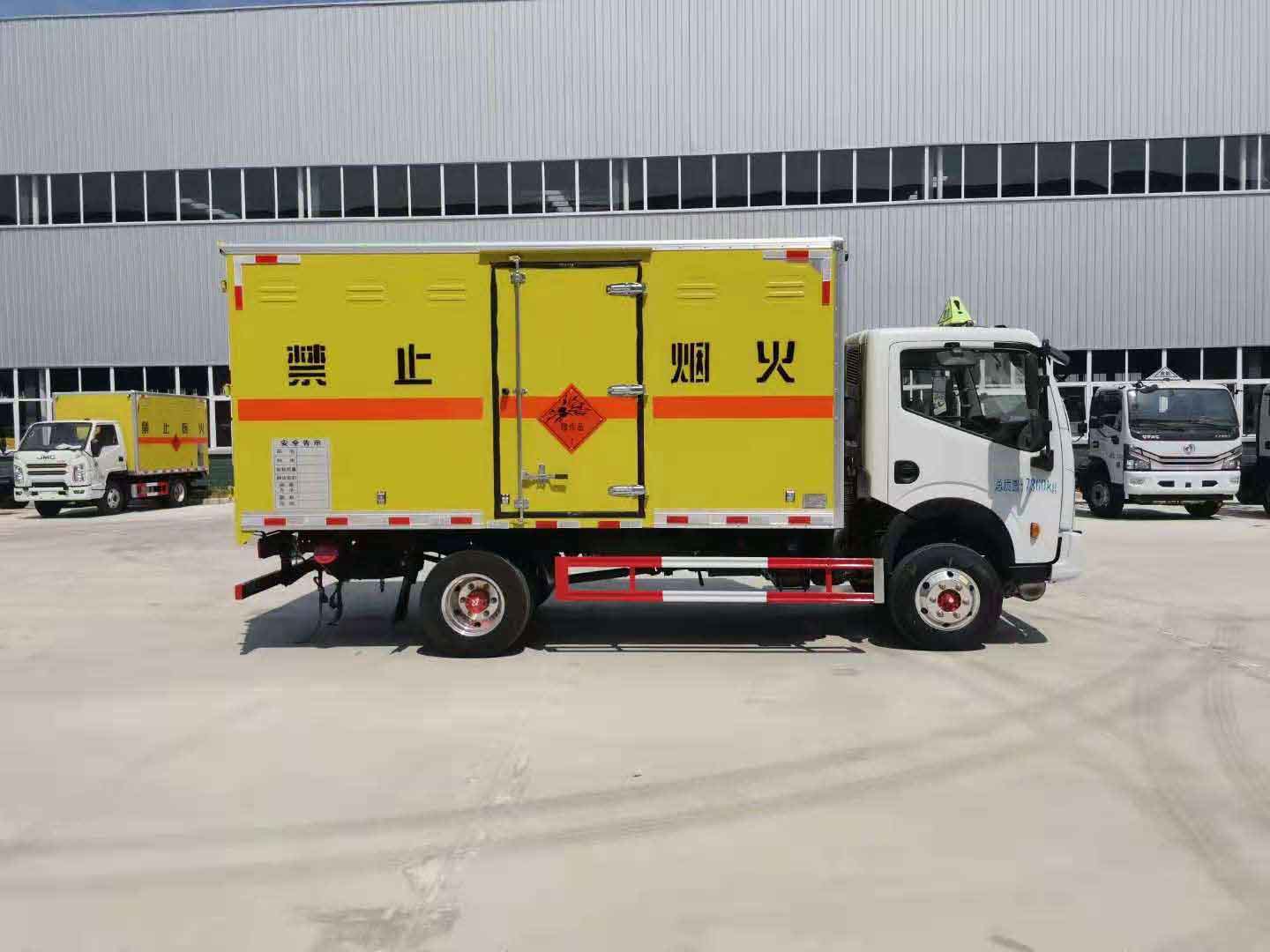 東風(fēng)多利卡玉柴140馬力爆破器材運(yùn)輸車廂體外板采用冷軋鋼板一次性沖壓成型的百葉窗,內(nèi)飾為導(dǎo)電性能良好的鋁板有透氣孔,內(nèi)襯為矩形管骨架牢靠穩(wěn)定,骨架內(nèi)部填充為透氣防潮阻燃的擠塑板。廂體外部四周鋁合金型材包邊,底板和車廂前下部鋪橡膠皮,后門雙開,右側(cè)選裝側(cè)開門,內(nèi)部安裝固定貨物的臥環(huán)或腰欄,安裝煙霧報(bào)警器、防盜感應(yīng)器。車身附件靜電接地帶、滅火器、防火罩、危險(xiǎn)品三角燈、橙色反光帶、菱形標(biāo)志牌、危險(xiǎn)品牌、安全告示齊全。