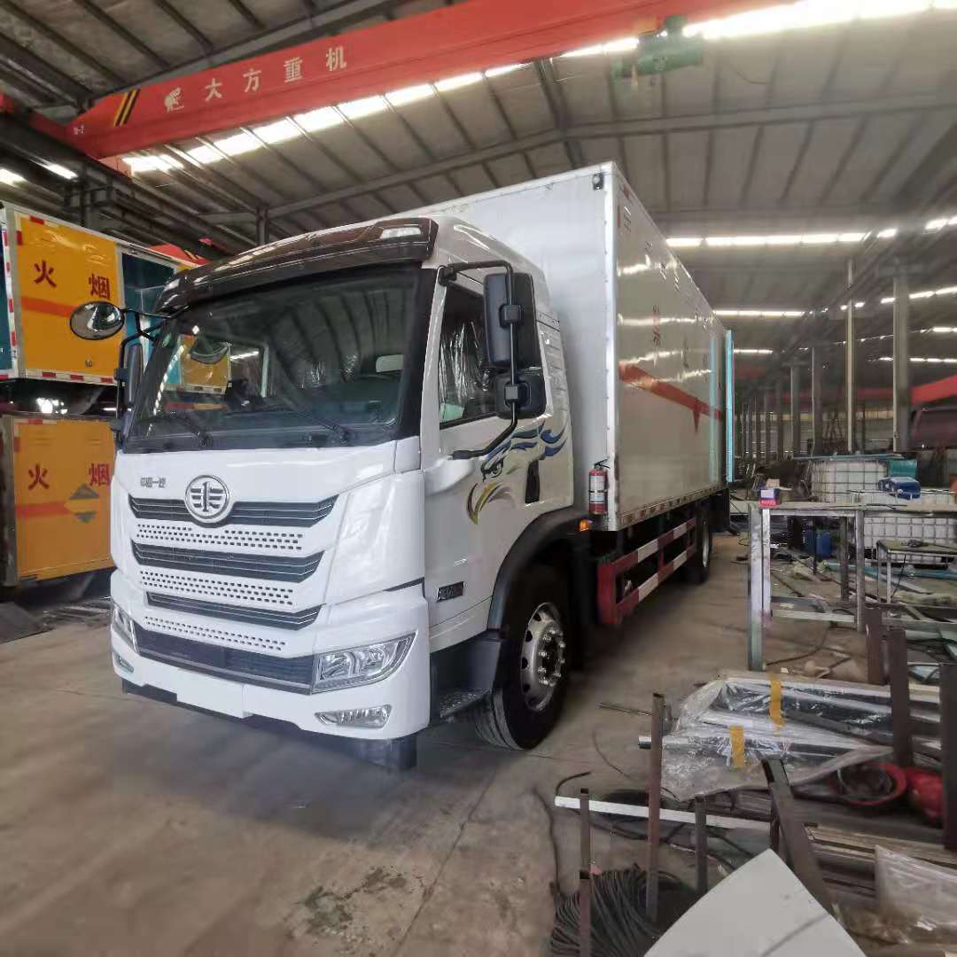 6米8解放龍V國(guó)六危險(xiǎn)品車嚴(yán)格按照公告尺寸制作,外板采用1mm厚冷軋板有一次性成型的百葉窗,內(nèi)飾為導(dǎo)電性能良好的鋁板有透氣孔,內(nèi)襯為矩形管骨架牢靠穩(wěn)定,內(nèi)部填充為透氣防潮阻燃的擠塑板,四種材料經(jīng)現(xiàn)代工藝復(fù)合而成,廂體外部上下鋁合金型材包邊,底板和車廂前下部鋪橡膠皮,后門雙開(kāi),右側(cè)前部單開(kāi)門,內(nèi)部有固定貨物的臥環(huán),車輛外部有靜電帶、滅火器、防火罩,車廂內(nèi)安裝煙霧報(bào)警器和門防盜報(bào)警器,嚴(yán)格按照國(guó)家危險(xiǎn)品相關(guān)法規(guī)張貼。
