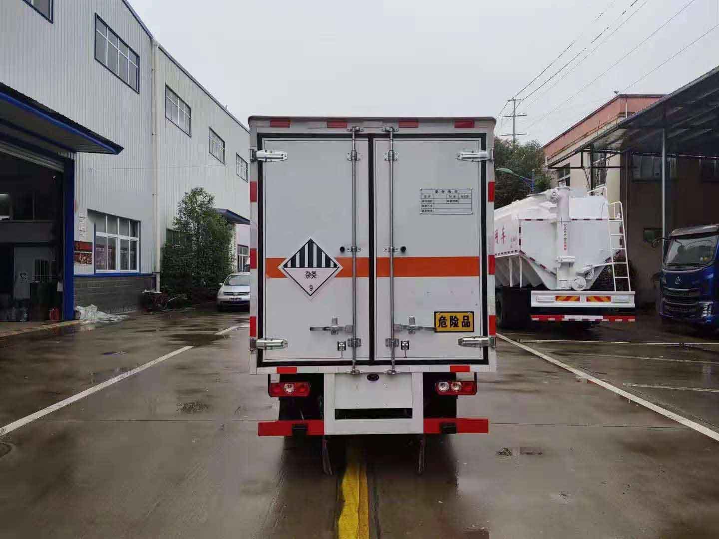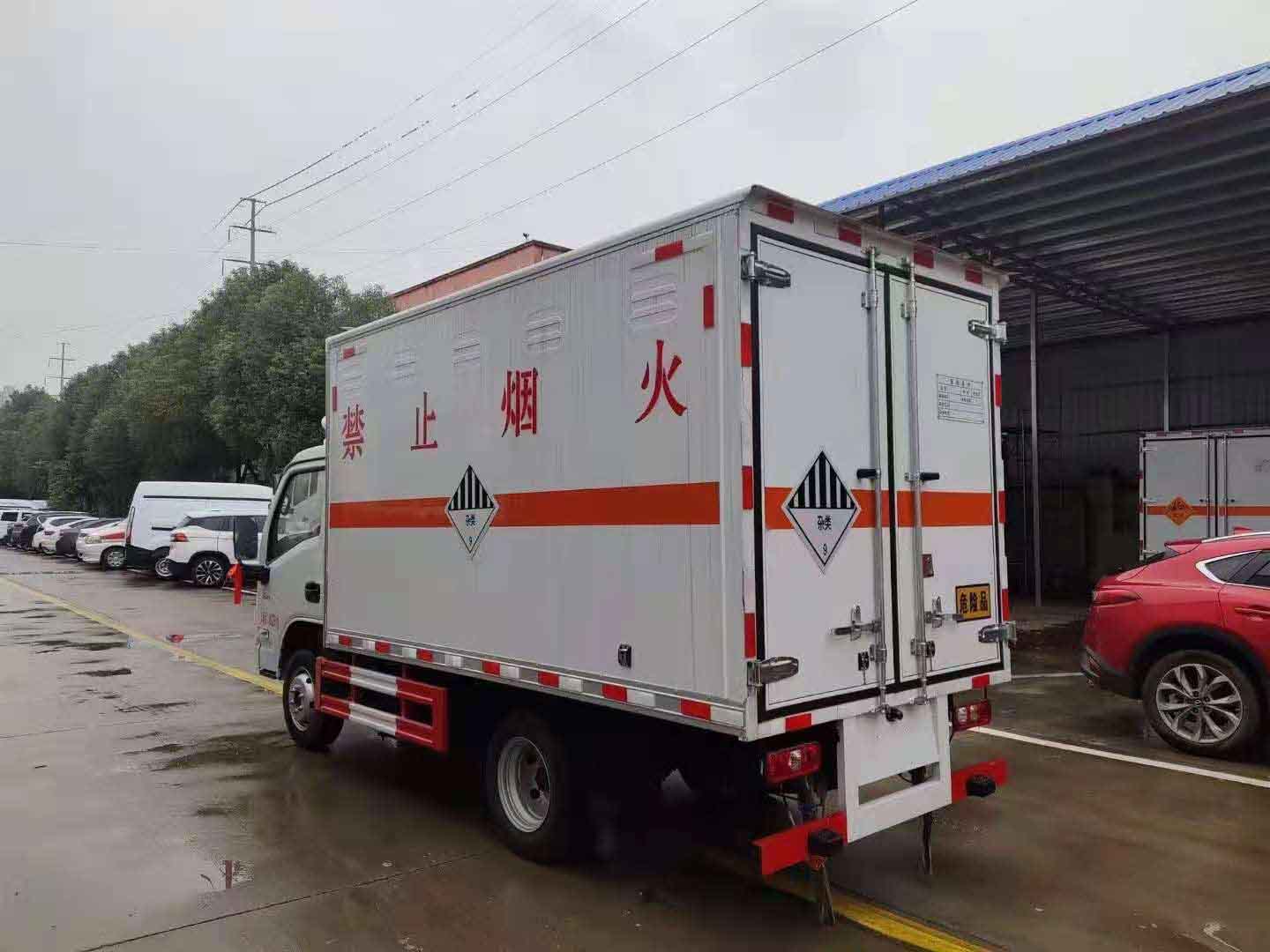 躍進國六汽油腐蝕品廂式車外板采用冷軋鋼板一次性沖壓成型的百葉窗,內飾為導電性能良好的鋁板有透氣孔,內襯為矩形管骨架牢靠穩定,骨架內部填充為透氣防潮阻燃的擠塑板。廂體外部四周鋁合金型材包邊,底板和車廂前下部鋪橡膠皮,后門雙開,右側選裝側開門,內部安裝固定貨物的臥環或腰欄,安裝煙霧報警器、防盜感應器。車身附件靜電接地帶、滅火器、防火罩、危險品三角燈、橙色反光帶、CCC反射器、菱形標志牌、危險品牌、安全告示齊全。