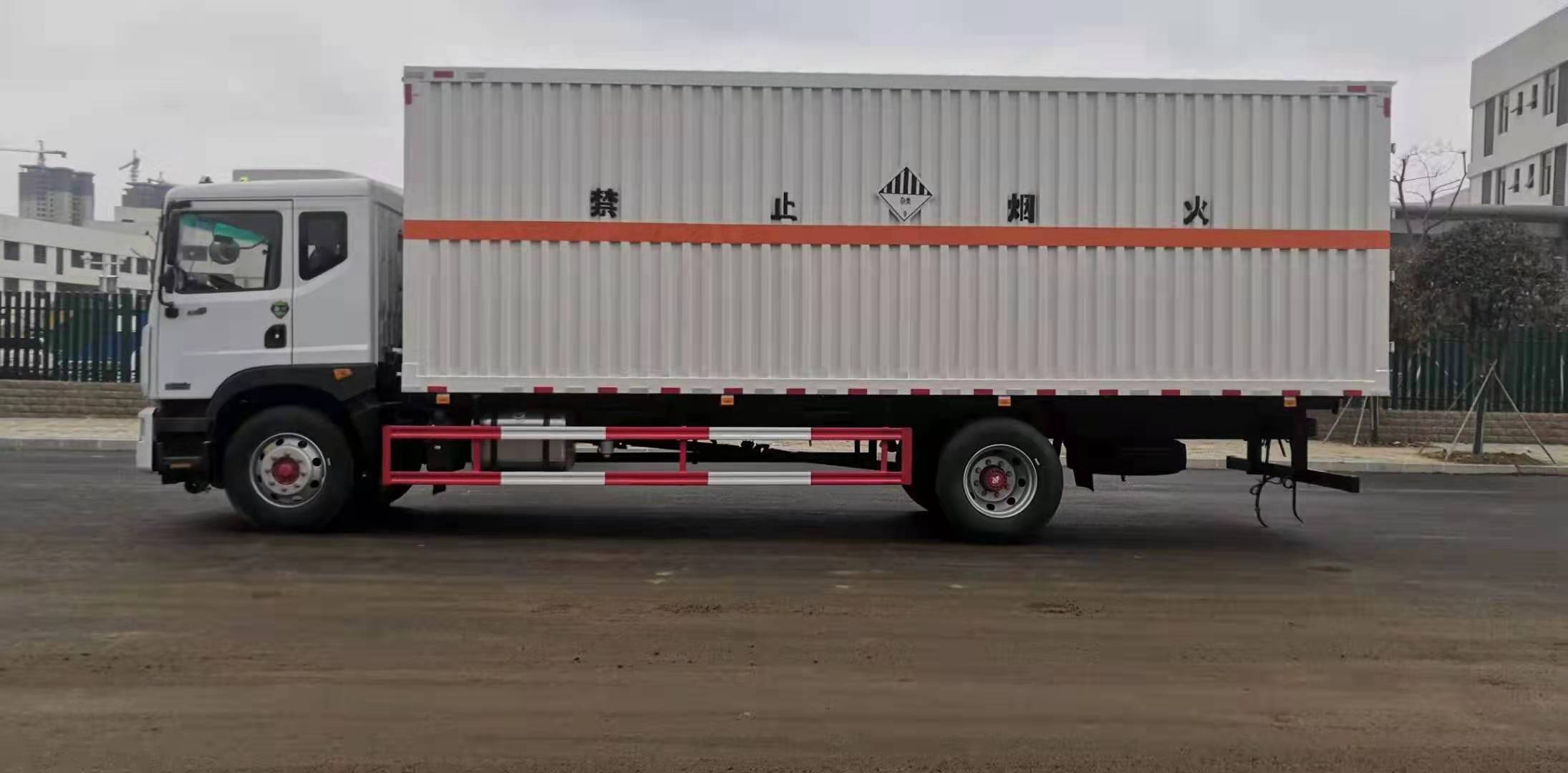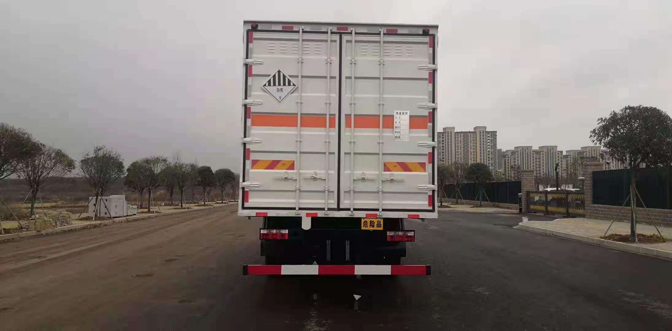 東風D9瓦楞板雜項國六危險品車外板采用1.2mm厚冷軋鋼板壓瓦成型,內(nèi)部槽鋼骨架,底板采用3mm花紋板上鋪設(shè)防靜電膠皮。廂體右側(cè)開對開門,后部設(shè)置對開門,廂體內(nèi)部兩側(cè)安裝捆綁貨物的臥環(huán)。廂體內(nèi)部安裝煙霧報警器及防盜報警感應器。