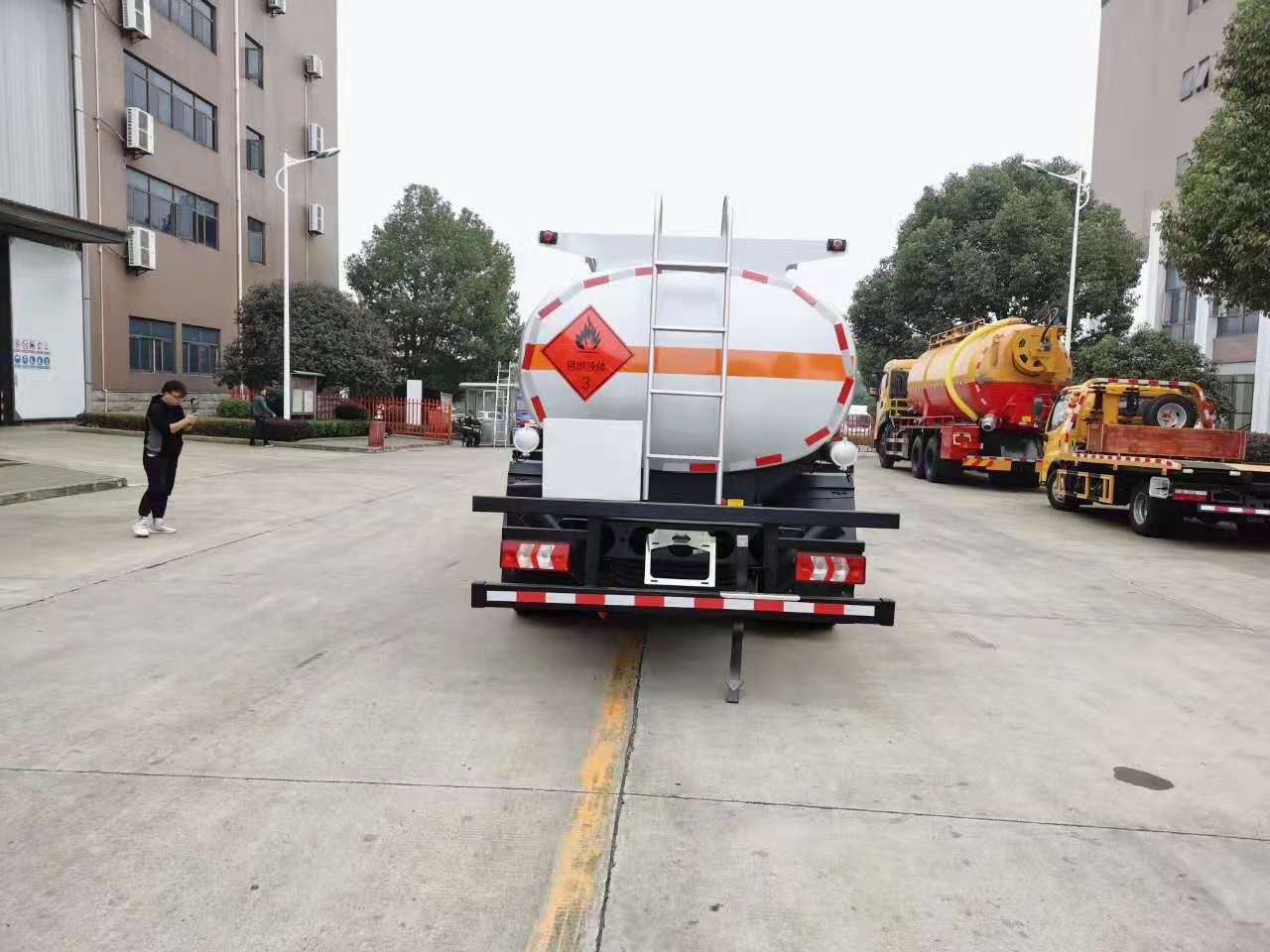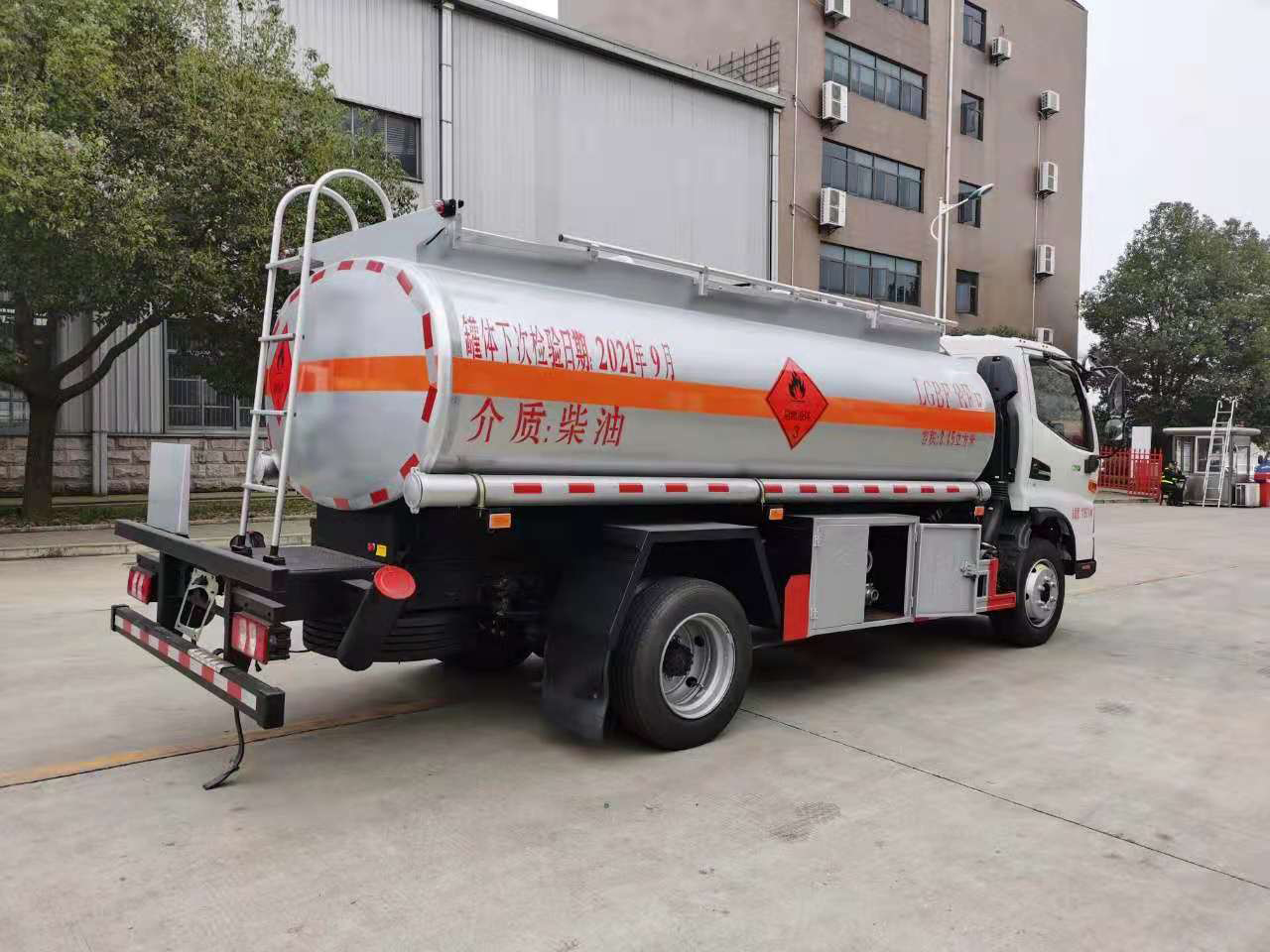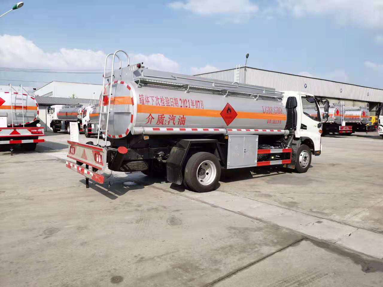 罐體材料Q235碳鋼,國(guó)標(biāo)5MM厚,一次性水壓封頭6MM厚,單倉(cāng)帶防浪隔板,帶輸油泵,可泵進(jìn)泵出,全套歐標(biāo)(一個(gè)歐標(biāo)罐口,一個(gè)海底閥,下裝油口、廢氣回收、防溢流探桿及靜電插座),智能海底閥報(bào)警系統(tǒng),一個(gè)工具箱,折疊護(hù)欄,罐尾一個(gè)爬梯,兩個(gè)反光板,一個(gè)防火帽,兩根與罐長(zhǎng)等長(zhǎng)輸油管,兩個(gè)滅火器,罐體防銹漆,貼3M牌反光條,反光帶,安全告示,三個(gè)“易燃液體”標(biāo)。
