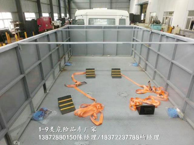 東風D9國六二類三項危險品車打破了傳統的瓦楞板行駛,為了更好地達到車輛的通風透氣,廂體尾板開設了透氣孔,便于空氣流通。安裝防飛濺檔泥板,三角墊木,反光背心,底扳采用4mm厚綱板制作,廂體外部采用的是1.2cm厚鋼板折彎成型,底板更加牢固。底部鋪靜電膠皮。帶危險品三角燈防火罩。有環保,有燃油,不超重.廂長6.85米。