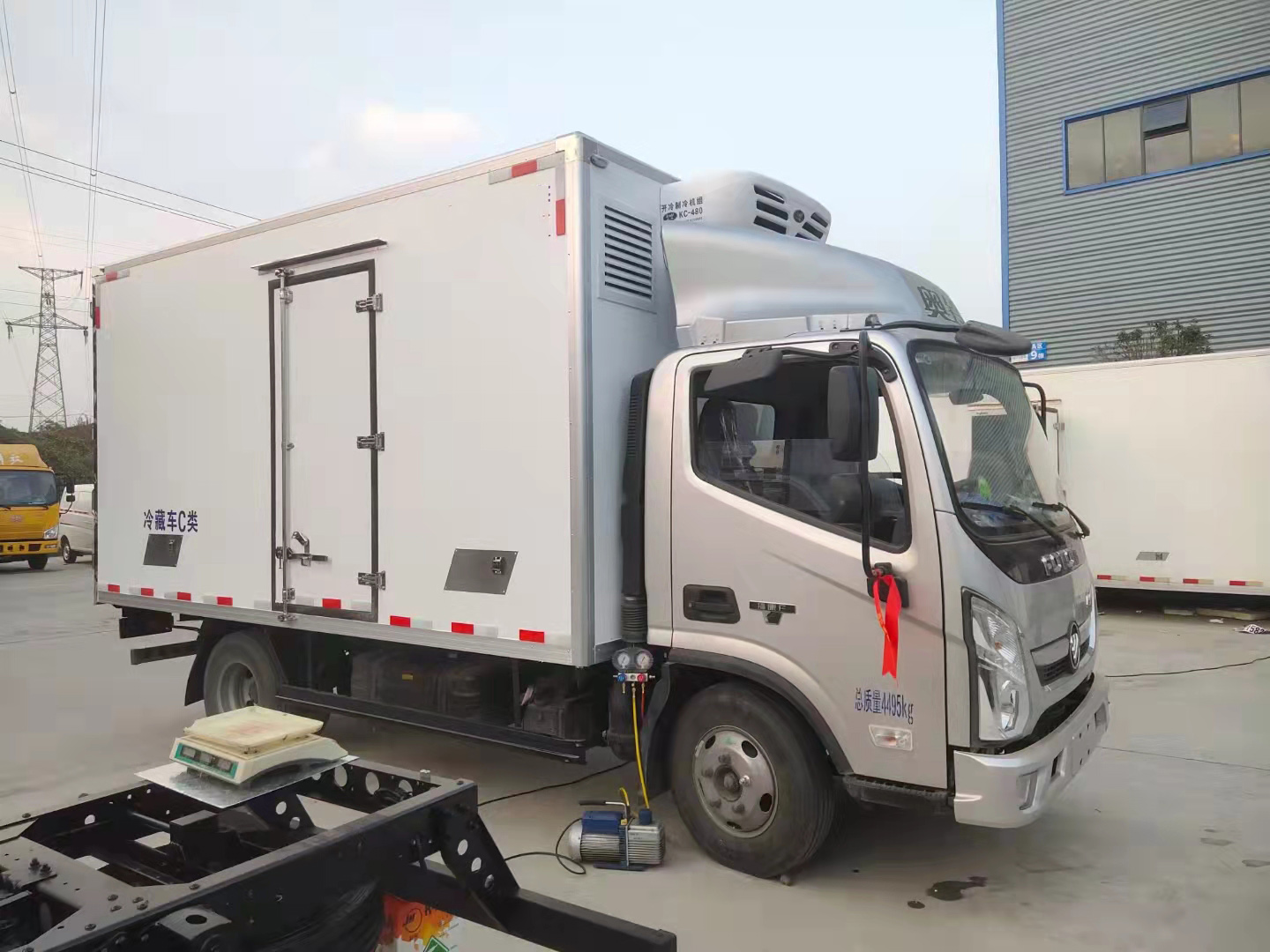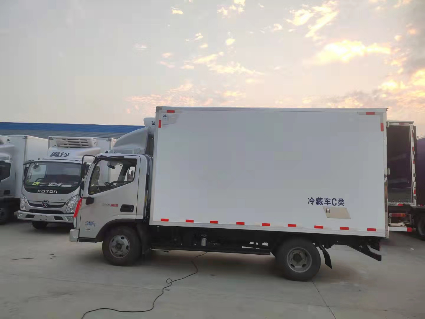 福田奧鈴國六藍牌帶肉鉤冷藏車整車型號:BJ5048XLC-FH 底盤型號:BJ1048W8JEA-FA 發動機型號:ISF2.8S5F 福田康明斯 排量:2.8L,130馬力,總質量:4495kg,整備質量:3200kg,外形尺寸:5995*2310*3250mm, 箱體尺寸:4085*2100*2100mm。采用新款1880駕駛室 ,3360軸距,發動機ISF2.8S5F福田康明斯130馬力,7.00R16鋼絲胎,5檔變速箱,氣剎,原廠空調,中控鎖+電動玻璃門窗,動力轉向,ABS。