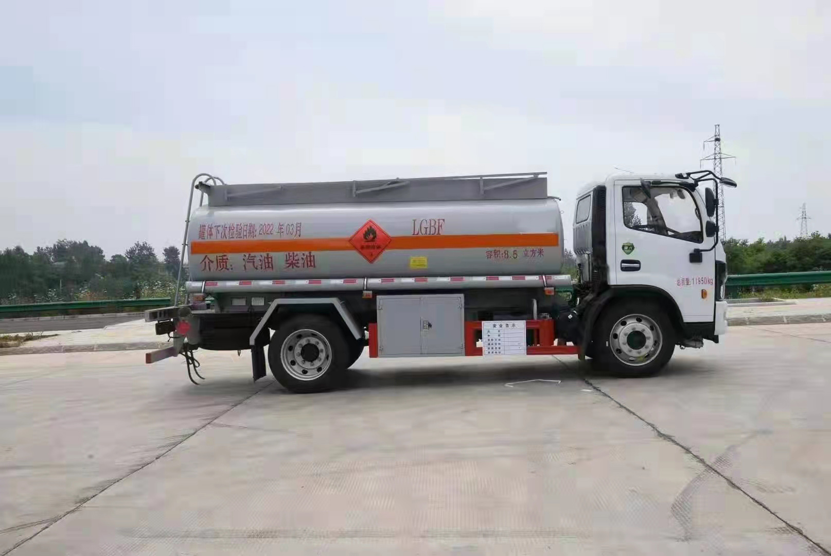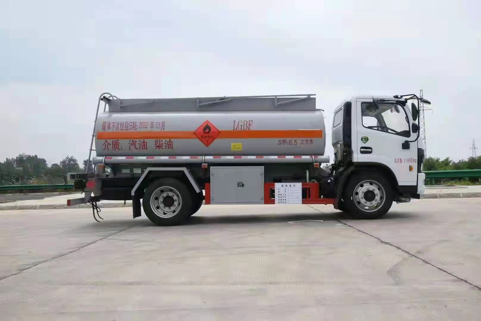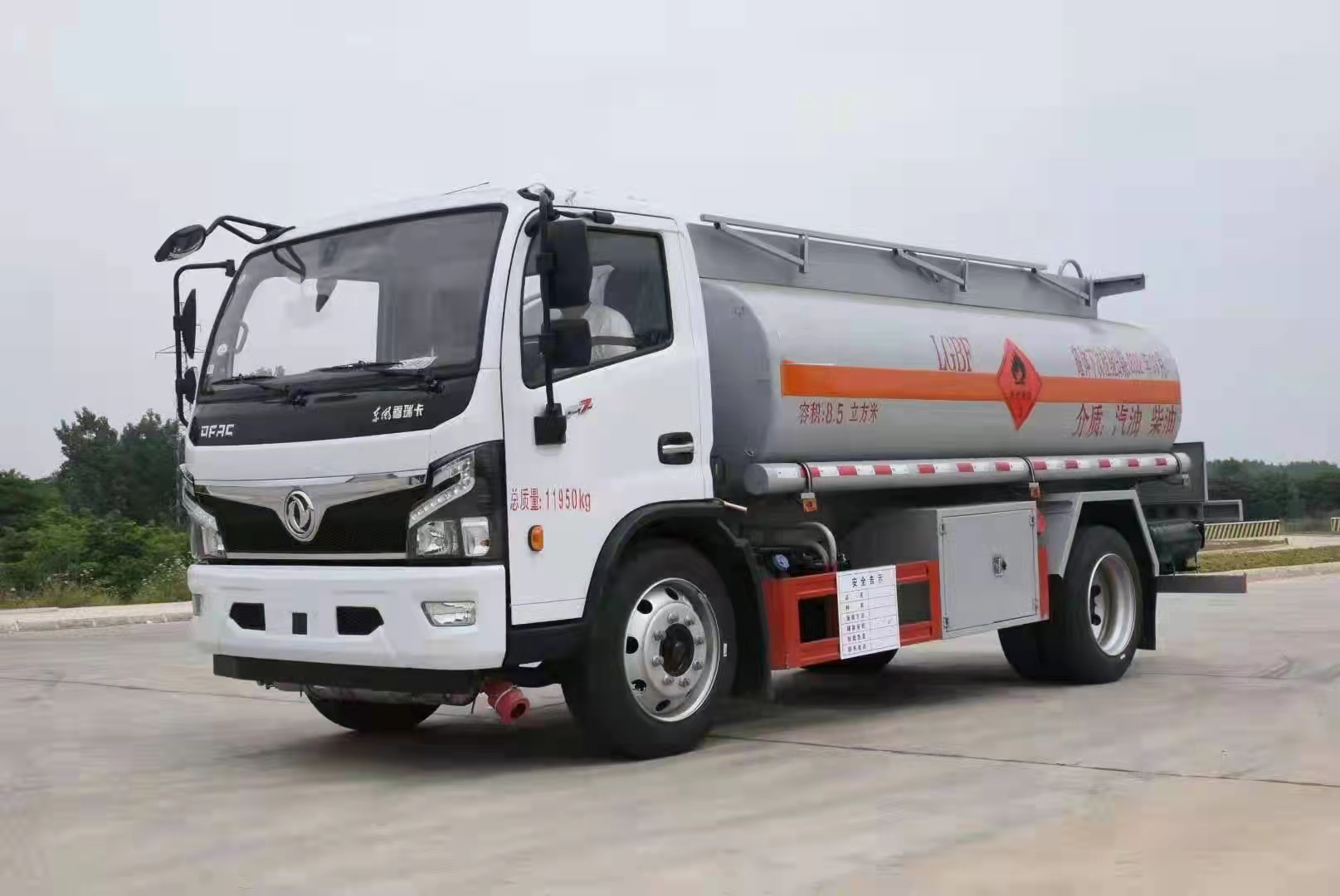 國六東風福瑞卡8.5方油罐車,底盤采用東風F6危貨專用底盤,匹配云內170馬力發動機,最大凈功率125KW,滿足國六排放標準;底盤采用前盤盤式制動+后鋼板非獨立懸掛設計,對于危險品車來說,有較強的穩定性和操控性;搭載8擋帶高低檔變速箱,斷氣剎,具有更高的可操控性。