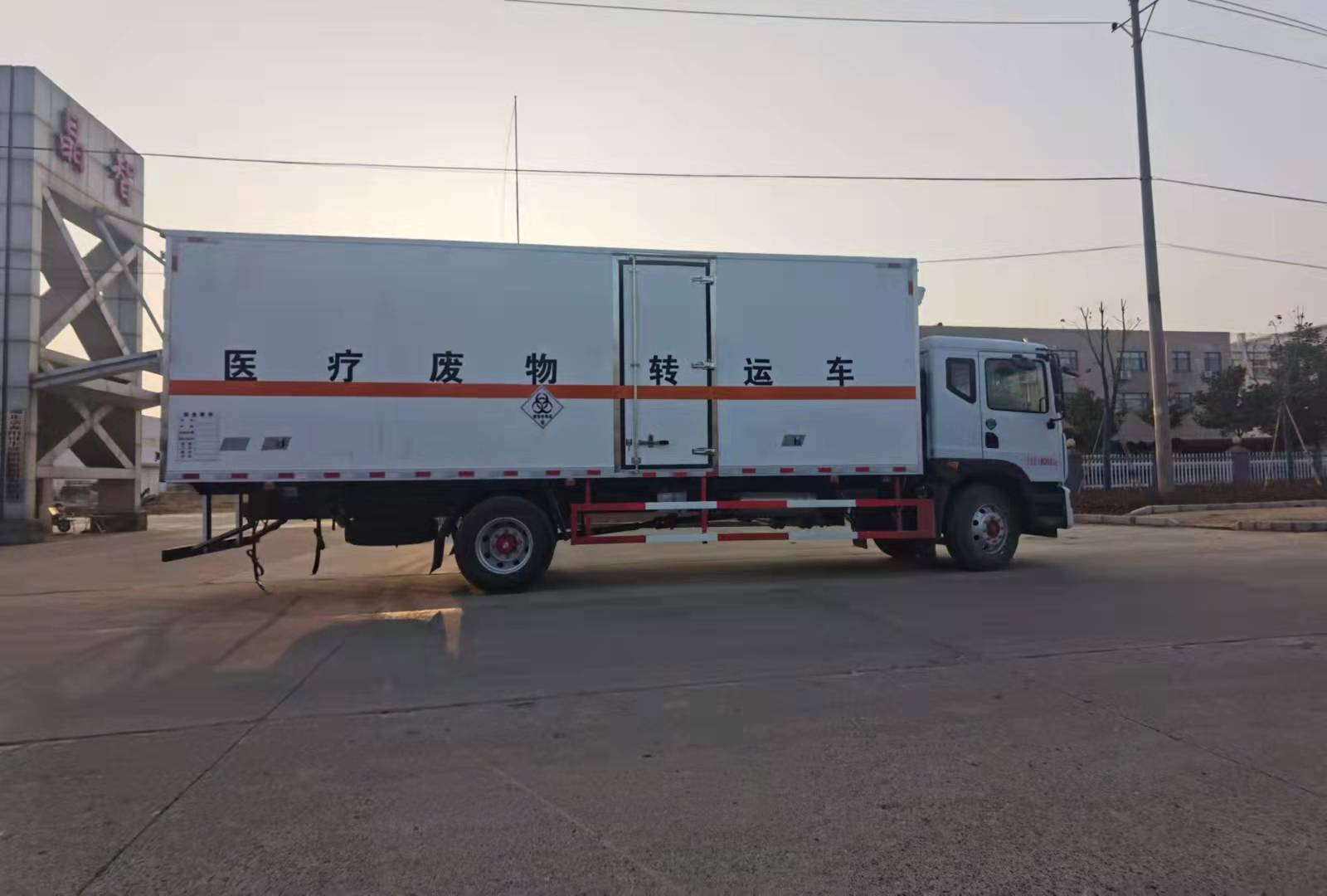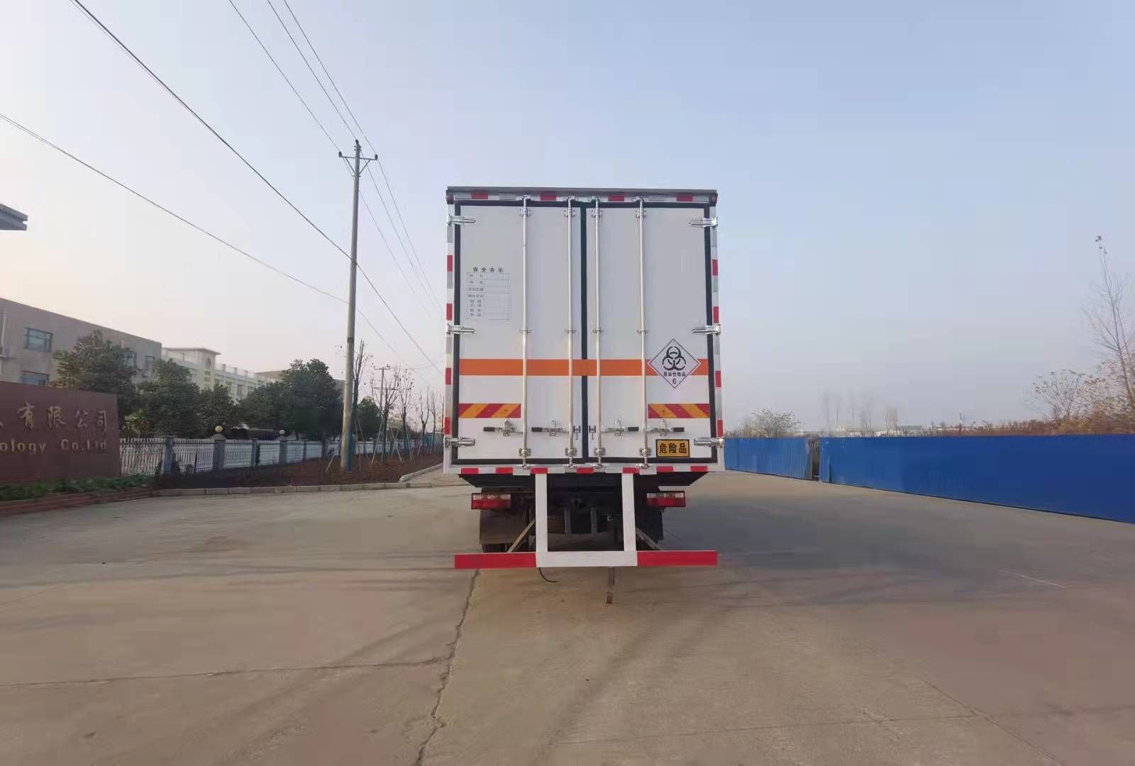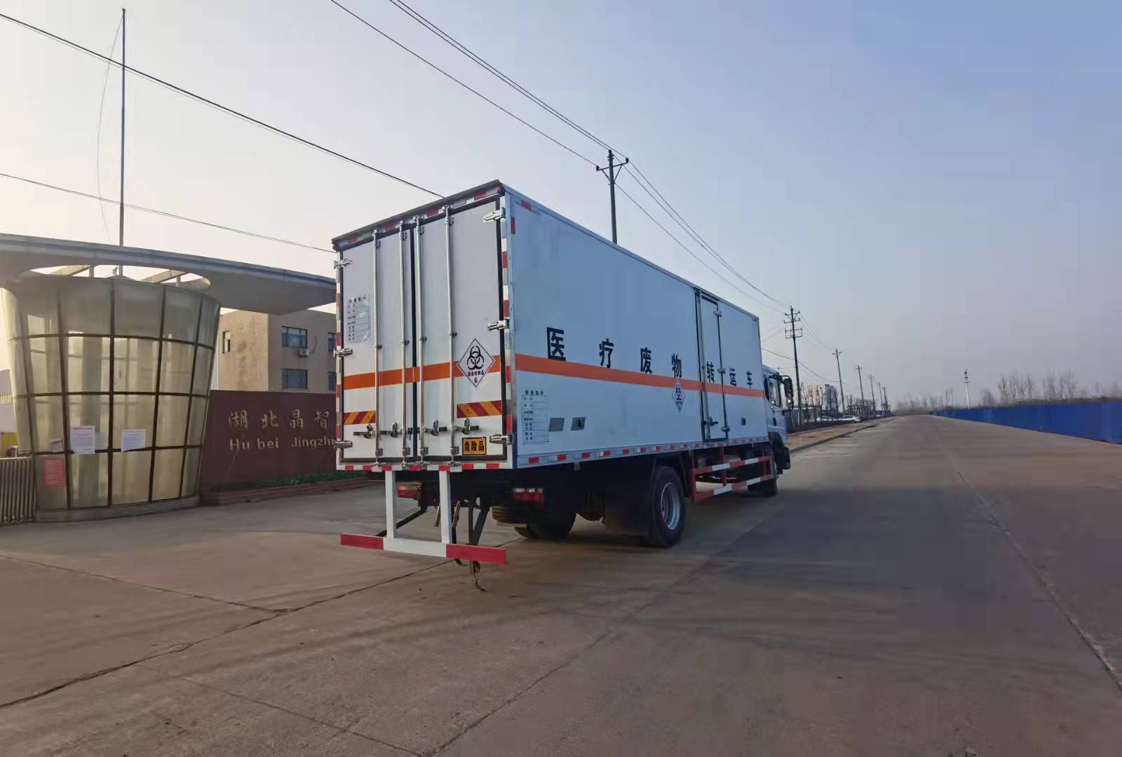 東風D9國六醫療廢物轉運車廂體外玻璃鋼內不銹鋼,中間填充高密度保溫材料,后門為雙層密閉結構,并采用迷宮式封條,使車廂完全封閉。箱內安裝卡槽,地漏帶污水箱,廂內安裝紫外線消毒燈,加裝自動消毒噴霧器(噴頭安裝在箱內頂部)。車廂體內裝配紫外線消毒殺菌設備。醫療廢物轉運車采用帶有“醫療廢物”標識。整車帶零下5度機組,嚴格按照公告生產。