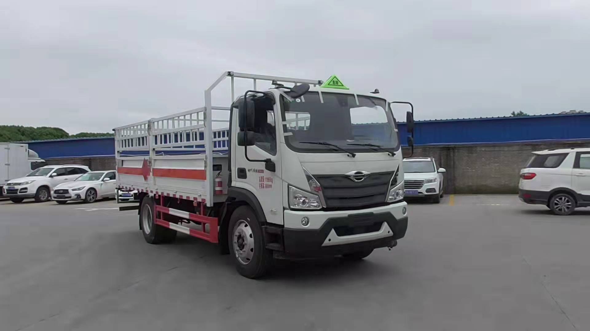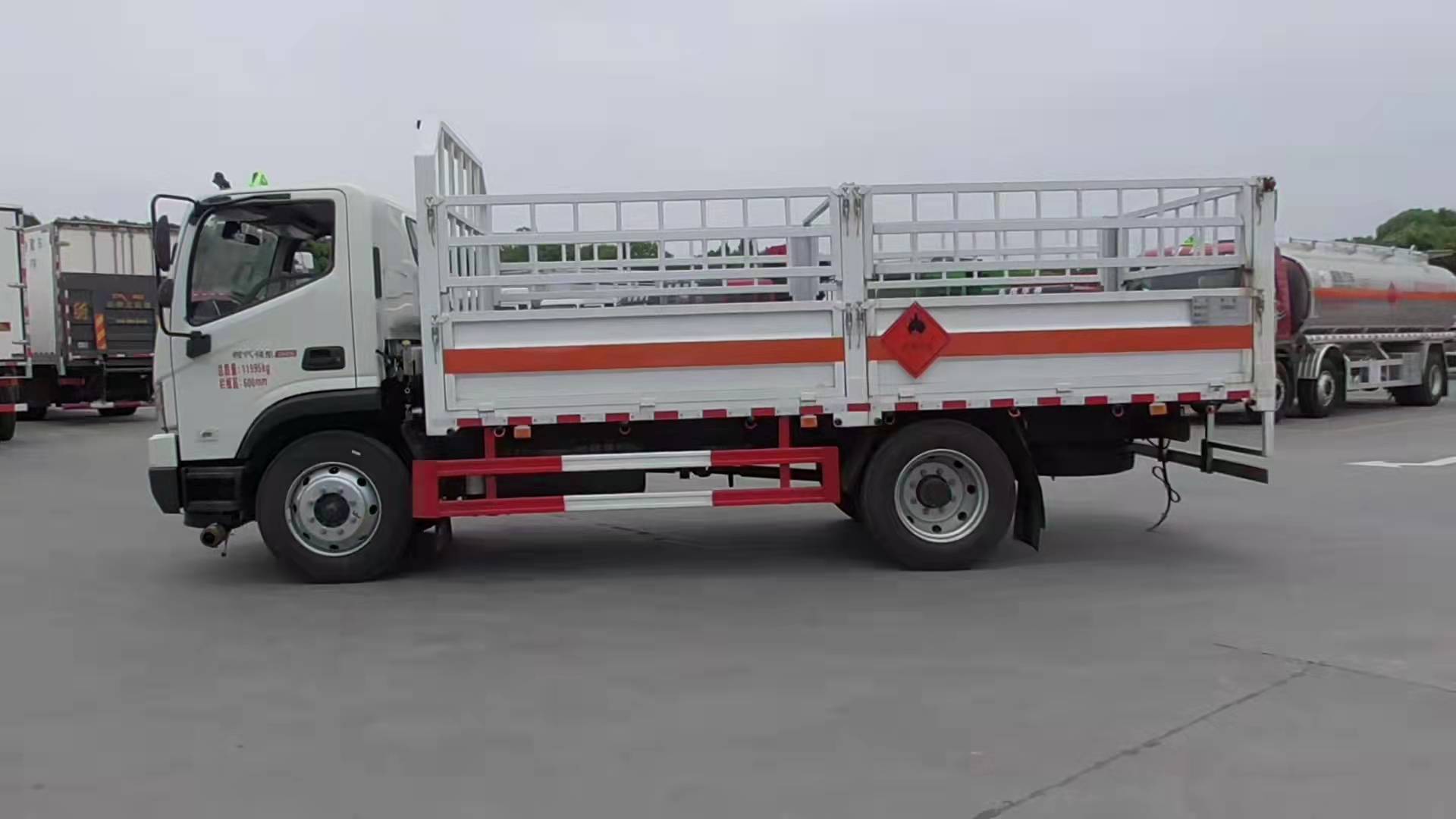 福田瑞沃5.2米國六黃牌氣瓶運輸車采用福田危險品車底盤,馬力大,采用濰柴190馬力發動機,輪胎9R22.5。整車型號:HCQ5124TQPBJ6-01型氣瓶運輸車。采用3800mm軸距,福田時代瑞沃ES寬體駕駛室,濰柴190馬力發動機,6檔變速箱,8噸后橋,9R22.5輪胎,斷氣剎,中控鎖,電動門窗,空調,帶前碰撞預警,軌道偏移預警。整車尺寸:7250×2350×3060mm,廂體尺寸:5180×2200×600mm。嚴格按照公告尺寸制作,邊2底3材質,底板上鋪靜電膠皮,側板上帶可卸式高欄,配備滅火器,三角頂燈,靜電拖帶等,嚴格按照國家危險品法規進行“易燃氣體”標識粘貼等。