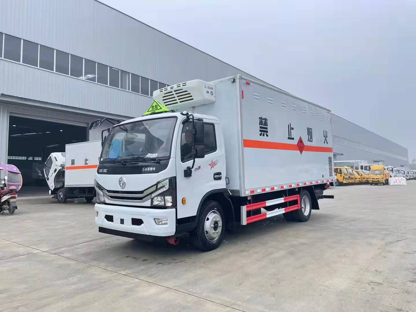 運輸三類危險品,很多客戶都想要能夠有制冷效果的車型,在眾多危險品車中,為了滿足客戶需求,我司將車輛定制為一類到九類,不同的車型所要求的設計參數和樣式不一樣。今天為您推薦的是東風多利卡帶機組國六易燃液體廂式運輸車,以下是詳細配置介紹: