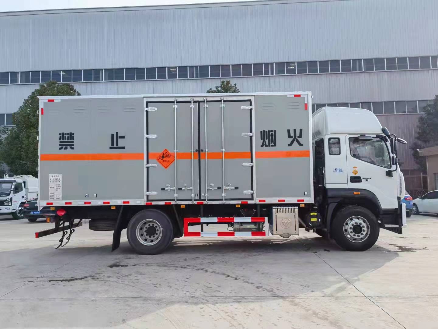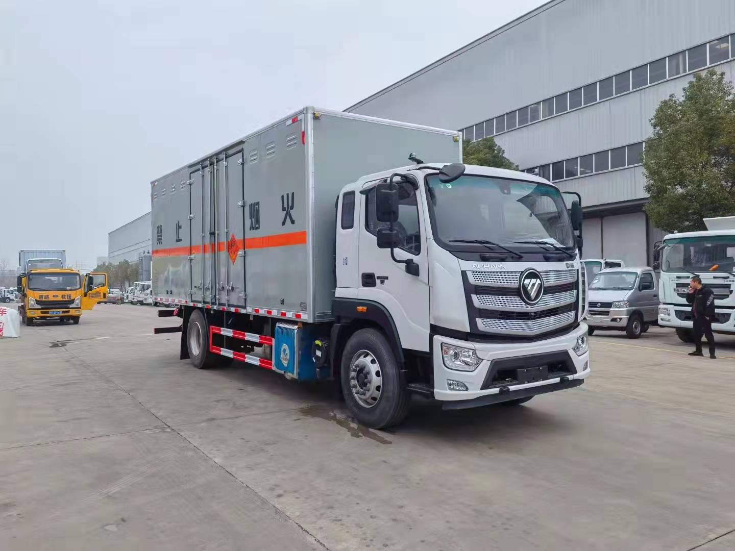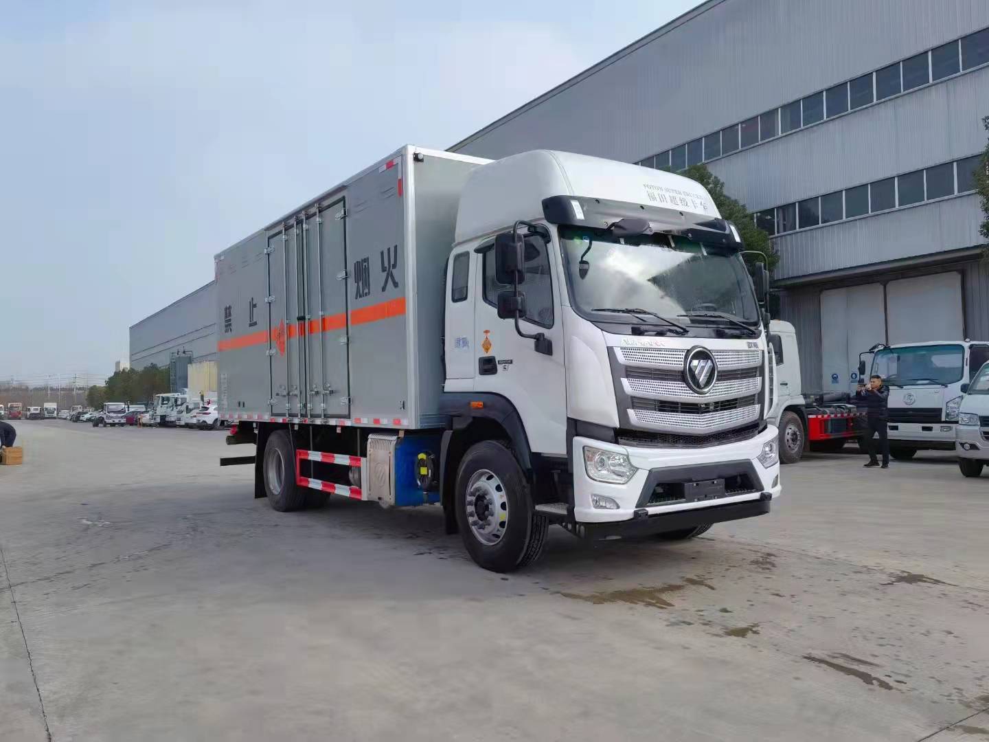 福田歐航國(guó)六6米8民爆物品運(yùn)輸車漆面更光滑。外板采用的冷軋板折彎而成的瓦楞板,內(nèi)飾為導(dǎo)電性能良好的鋁平板有透氣孔,矩形骨架結(jié)構(gòu)內(nèi)部填充防潮阻燃擠朔板,復(fù)合加鉚合工藝。廂體四周鋁合金包邊及包角,車廂底板鋪設(shè)防靜電膠皮,廂體前鋪設(shè)防靜電膠皮。后部設(shè)置對(duì)開(kāi)門,可選裝側(cè)門位置,廂體內(nèi)部?jī)蓚?cè)安裝捆綁貨物的臥環(huán)。廂體內(nèi)部安裝氣體感應(yīng)器及防盜報(bào)警器,車廂粘貼橙色放光帶,箱體粘貼 菱形告示牌,安全告示牌。