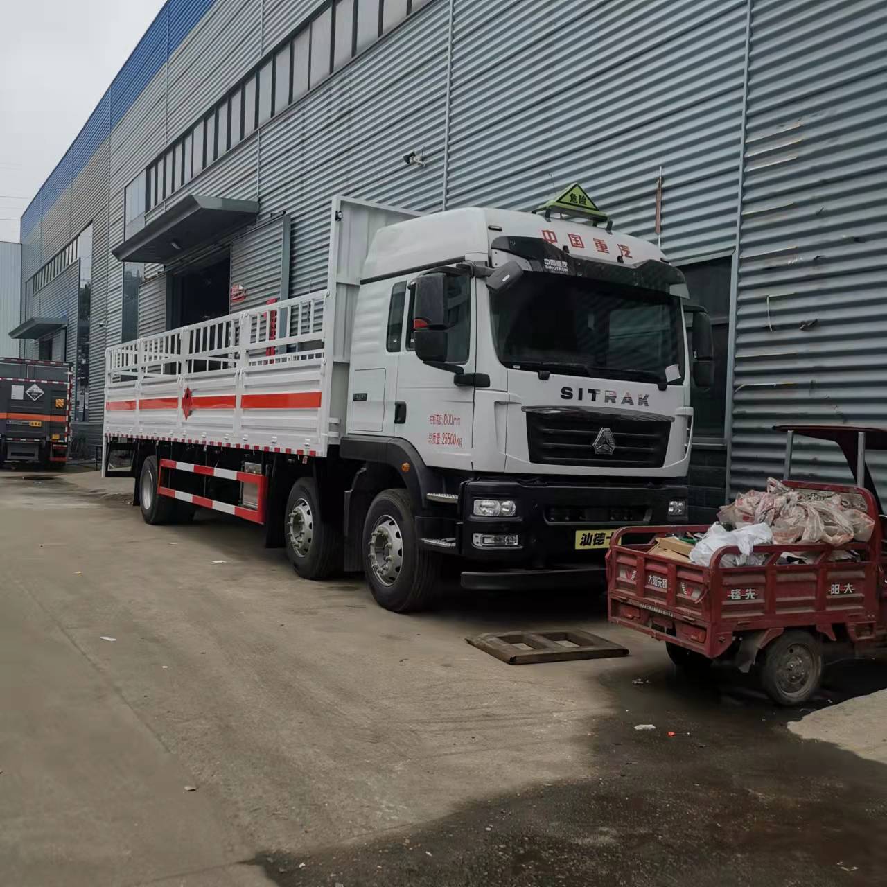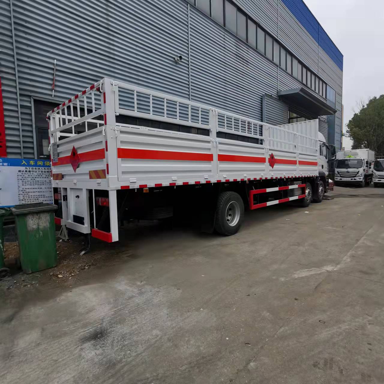 汕德卡國六三軸氣瓶車外形尺寸:12000*2500/2550*3500/3650,廂體尺寸:,9400*2400/2450*800,帶活動蒼欄,底板鋪防靜電膠皮。其余標配,廂體顏色可選裝。可選裝欄板,可選裝液壓尾板,不超重,有環保,3C,安全達標。三角燈,滅火器,危險品標識,反光標等隨車工具。汕德卡國六三軸氣瓶車廠家提供上戶手續:底盤合格證,整車合格證,環保清單,四聯機動車上戶發票(發票聯/抵扣聯/報稅聯/注冊登記聯),車輛質保手冊,全國服務站名錄,隨車工具。