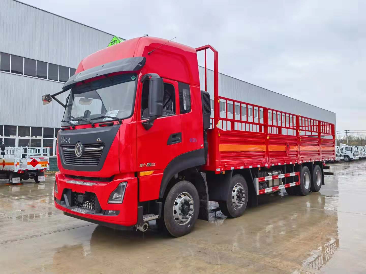 東風天龍前四后八KL國六氣瓶車采用的是可拆卸式 高欄,整車采用紅色更亮麗耀眼,貨箱尺寸可達9米4,帶液壓尾板,整車不超重,重點是該車匹配的是高頂雙臥駕駛室,危險品標配兩人,乘坐休息兩不誤。該車支持定制,可分期付款,歡迎各新老客戶來電咨詢訂購!