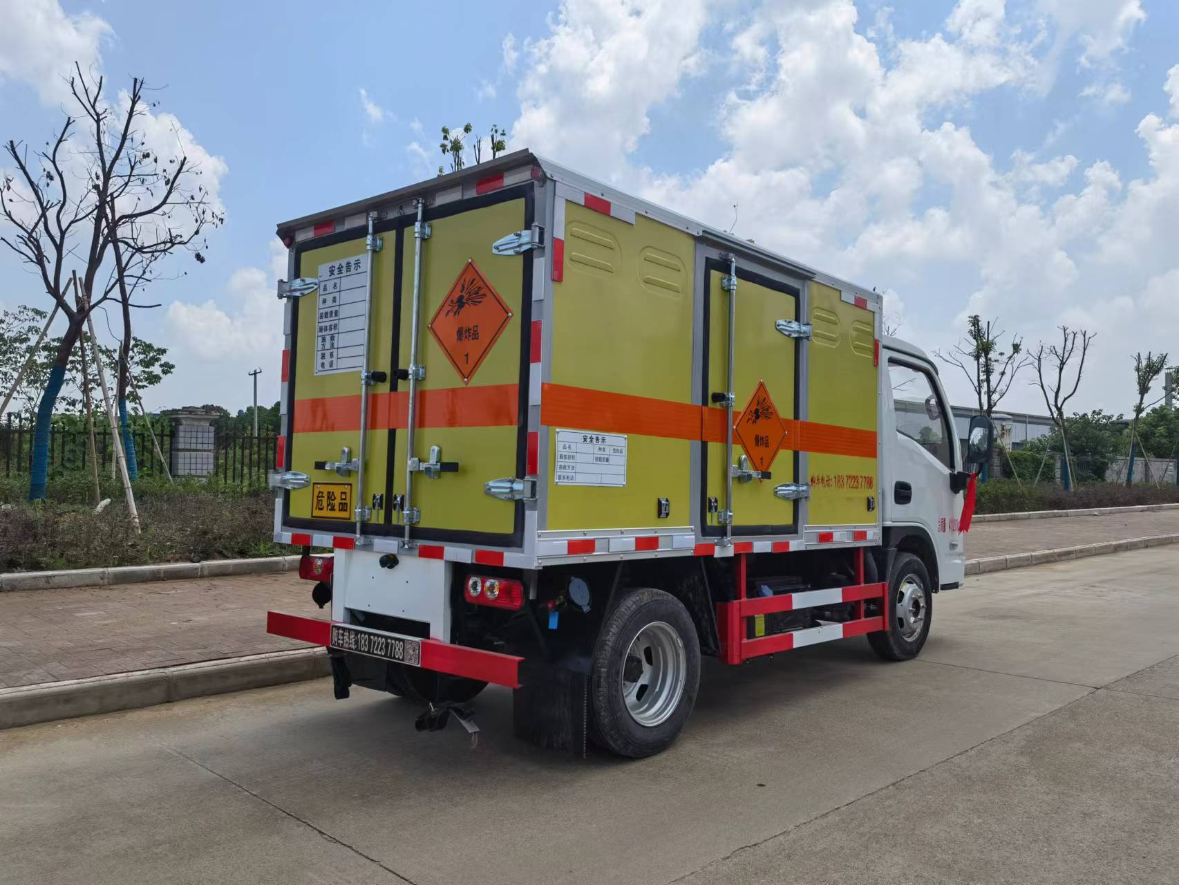 躍進S80穿梭礦洞專用炸薬車采用的是專用的危險品車底盤,全柴95馬力發動機,帶中控鎖、電動門窗、原廠空調、該車排氣管設置在駕駛室前方,設置有限速裝置,裝貨更方便。采用全柴95馬力發動機,廂長采用的是2700*1600*1300mm,進入礦洞更方便,不受限高的影響,穿梭自如。箱體內帶有固定貨物的臥環,方便更好地固定箱內貨物。根據藍牌車規定,該車額載更大,在1.755噸,客戶拉重貨也不用擔心超載的問題。