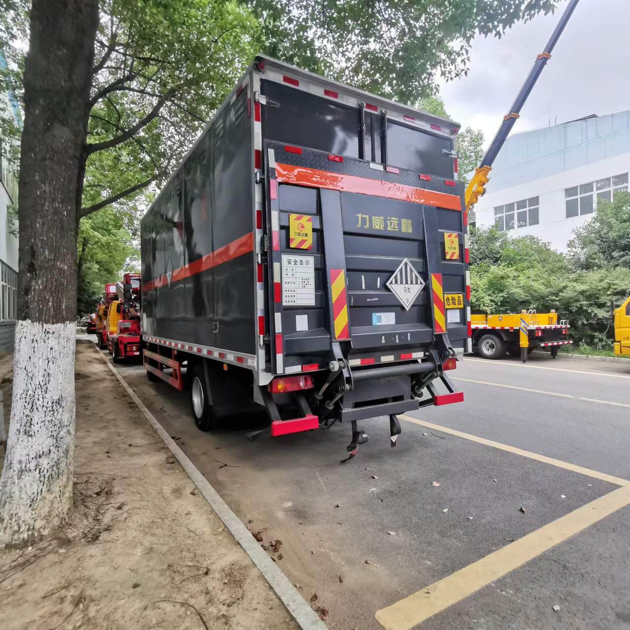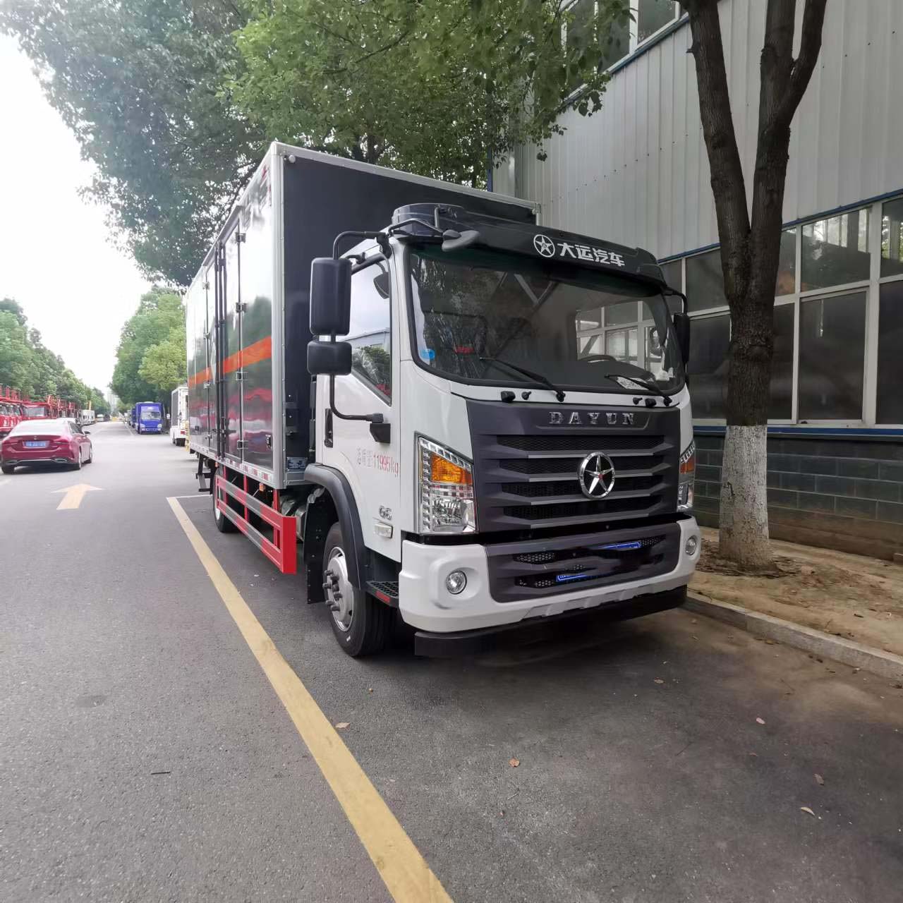 大運(yùn)國六5米1危險(xiǎn)品車采用1.2mm厚冷軋板,內(nèi)襯為矩形管骨架牢靠穩(wěn)定,底板為4mm厚花紋板,箱體帶雙開雙側(cè)門,帶靜電帶、外形尺寸:7230*2420*2830mm,箱體尺寸:5150*2300*2300mm。該車定制的是灰色的箱體,尾部加裝液壓尾板,整車不超重。