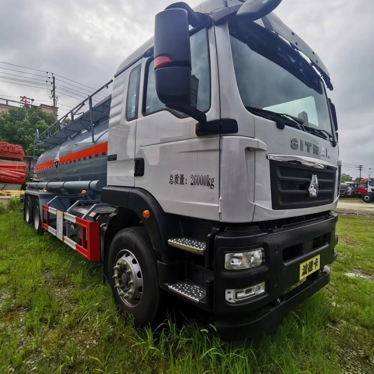 汕德卡國六后雙橋腐蝕品罐式車采用的是汕德卡危險品專用底盤;多功能方向盤;電動電加熱后視鏡;HW95508STCL變速箱;VPD050QB前軸(盤);MCY11BGS自調(diào)臂單后橋(鼓);速比4.63;雙層車架(8+4/280);前少后空氣懸架(3/3/-);博世方向機;限速79km/h;前置排氣系統(tǒng);AEBS(EBS+ESC);高位保險杠;295/80R22.5輪胎;400L油箱;LDWS+FCWS;中國重汽智能通B版;電磁式電源開關(guān);終端排放監(jiān)控裝置;轉(zhuǎn)向輪爆胎應(yīng)急裝置;165AH蓄電池。