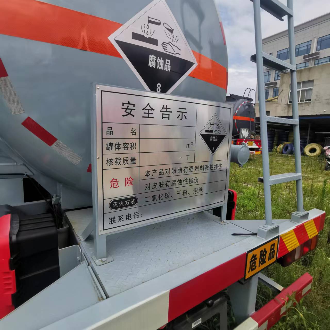 汕德卡國六后雙橋腐蝕品罐式車罐體通倉,內(nèi)襯聚乙稀塑20mm厚,一個歐標(biāo)罐口帶全塑接酸盤,罐體頂部帶方盒子式上圍板,圍板內(nèi)做重瀝青防腐。罐體尾下部帶一個DN100型不銹鋼襯四氟海底閥(海底閥帶聲光報警裝置),罐體尾部左右大梁下各一個自流口,用DN80型襯氟球閥控制帶外購全塑保護箱,不銹鋼升降護欄,花紋板走道,后爬梯,一個工具箱,兩個8KG滅火器,兩根PVC鋼絲軟管并帶PVC塑料炮筒管。其余按廠家標(biāo)配。