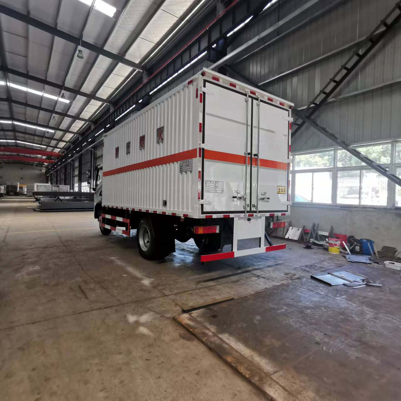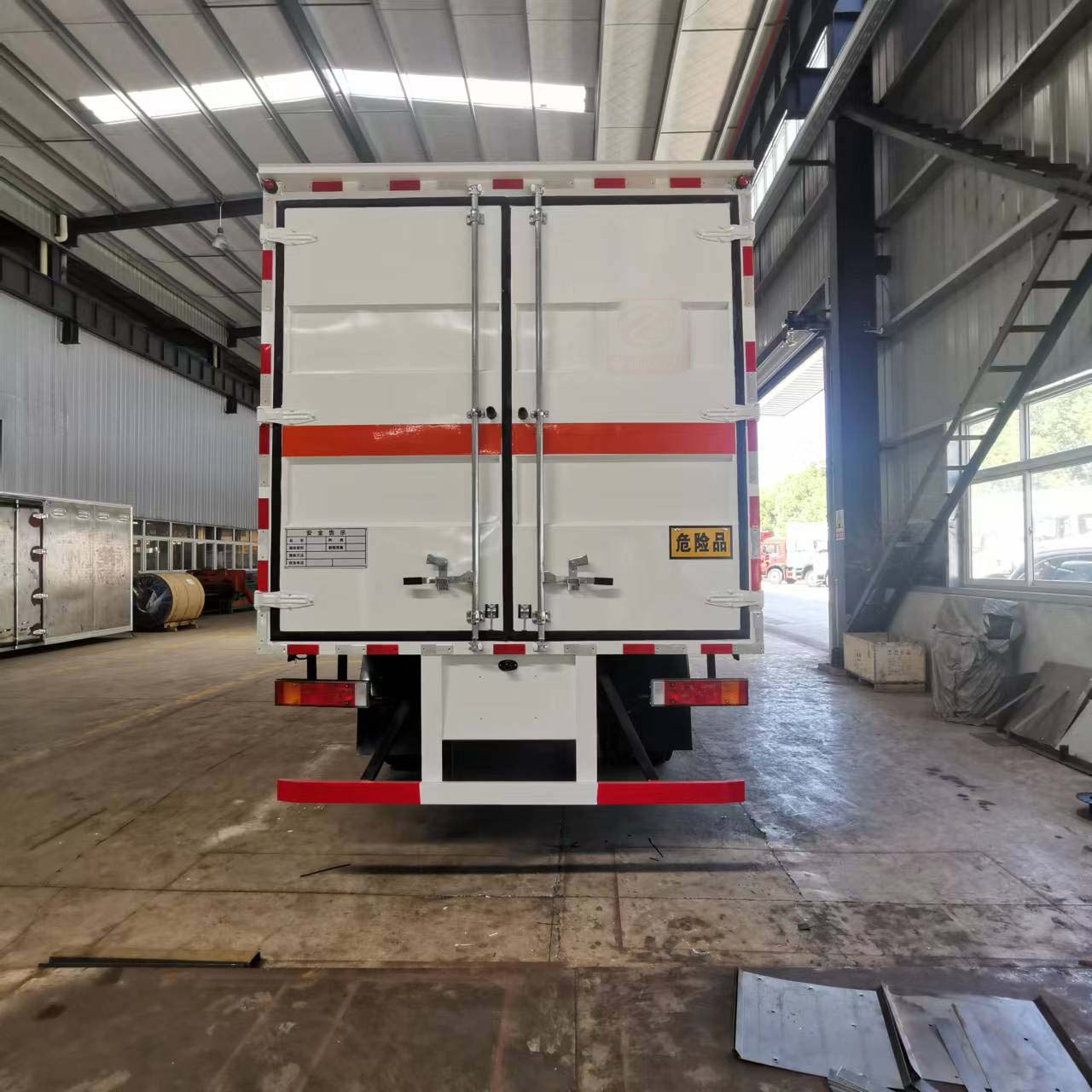 豪華的配置,需要重點提到的是該車采用的是氣囊減震座椅,司機長途駕駛少去了疲倦,更安全進行駕駛。貨箱尺寸:5150*2300*2300mm,箱體容積可達27個方。瓦楞板車身結構運輸貨物更扎實。廂體外部四周鋁合金型材包邊,底板和車廂前下部鋪橡膠皮,后門雙開,可選開側門,內部裝固定貨物的臥環或護板,安裝煙霧報警器、防盜感應器。車身附件靜電接地帶、滅火器、防火罩、危險品三角燈、橙色反光帶、反光板、菱形標志牌、危險品牌、安全告示。