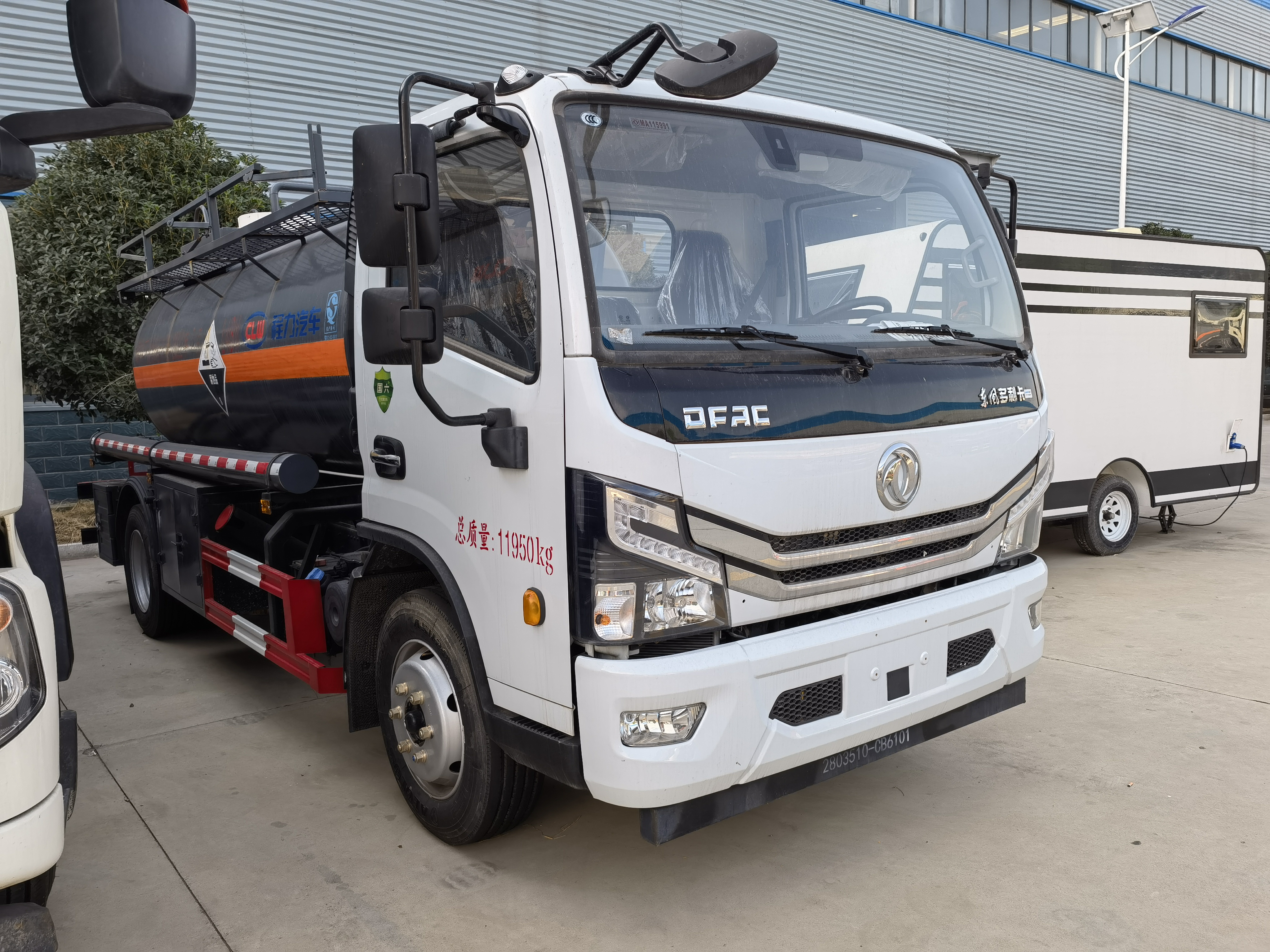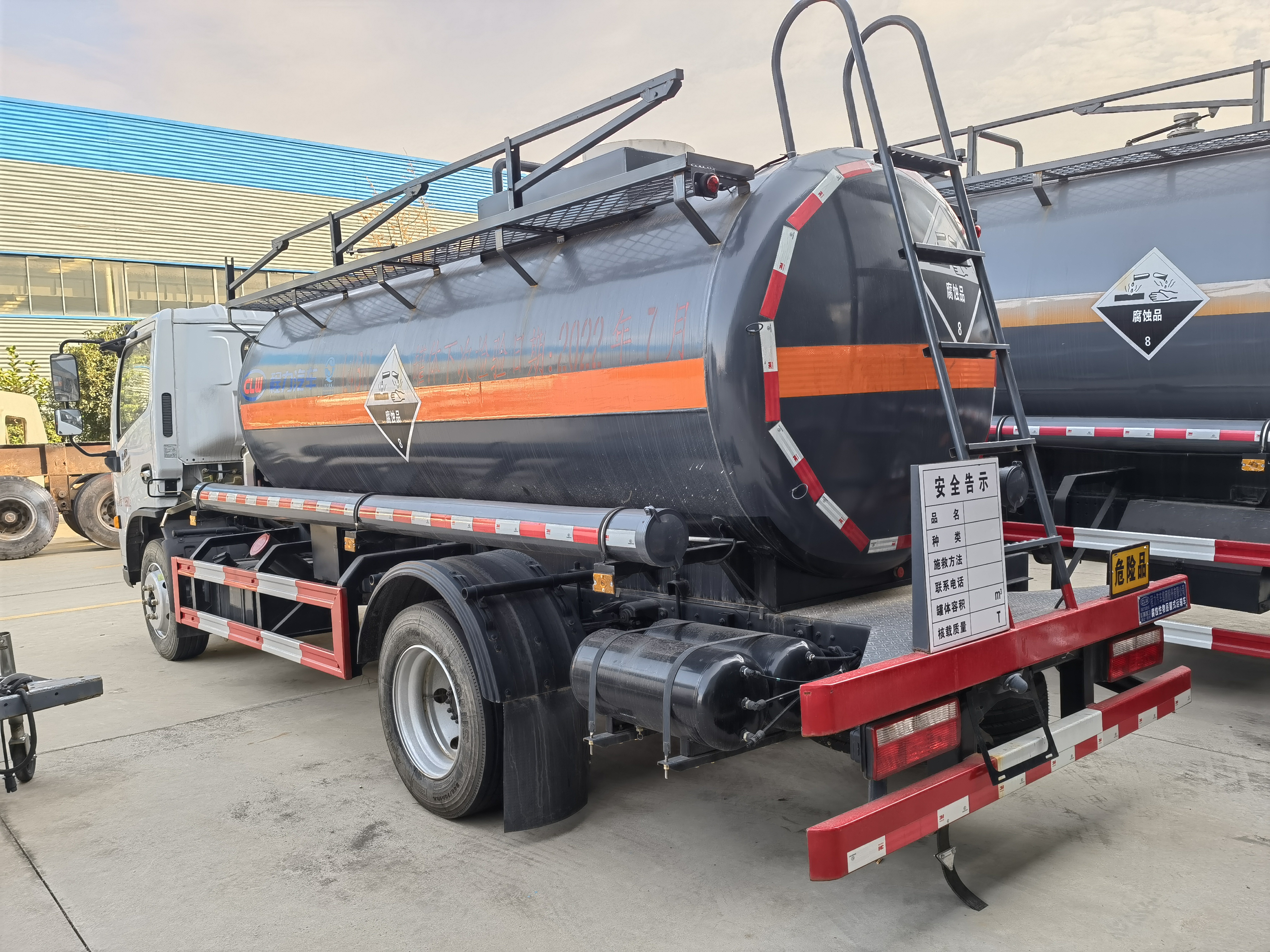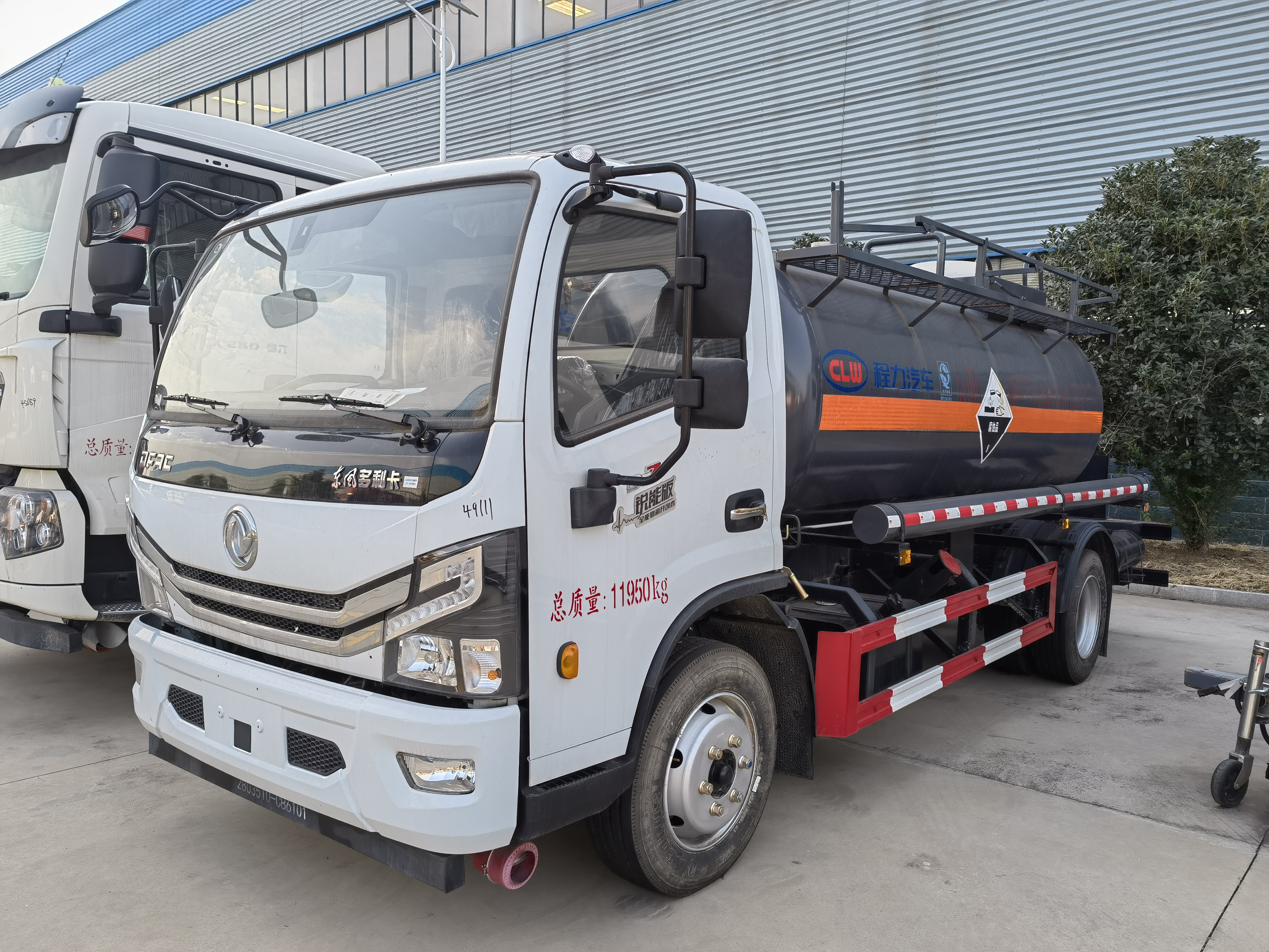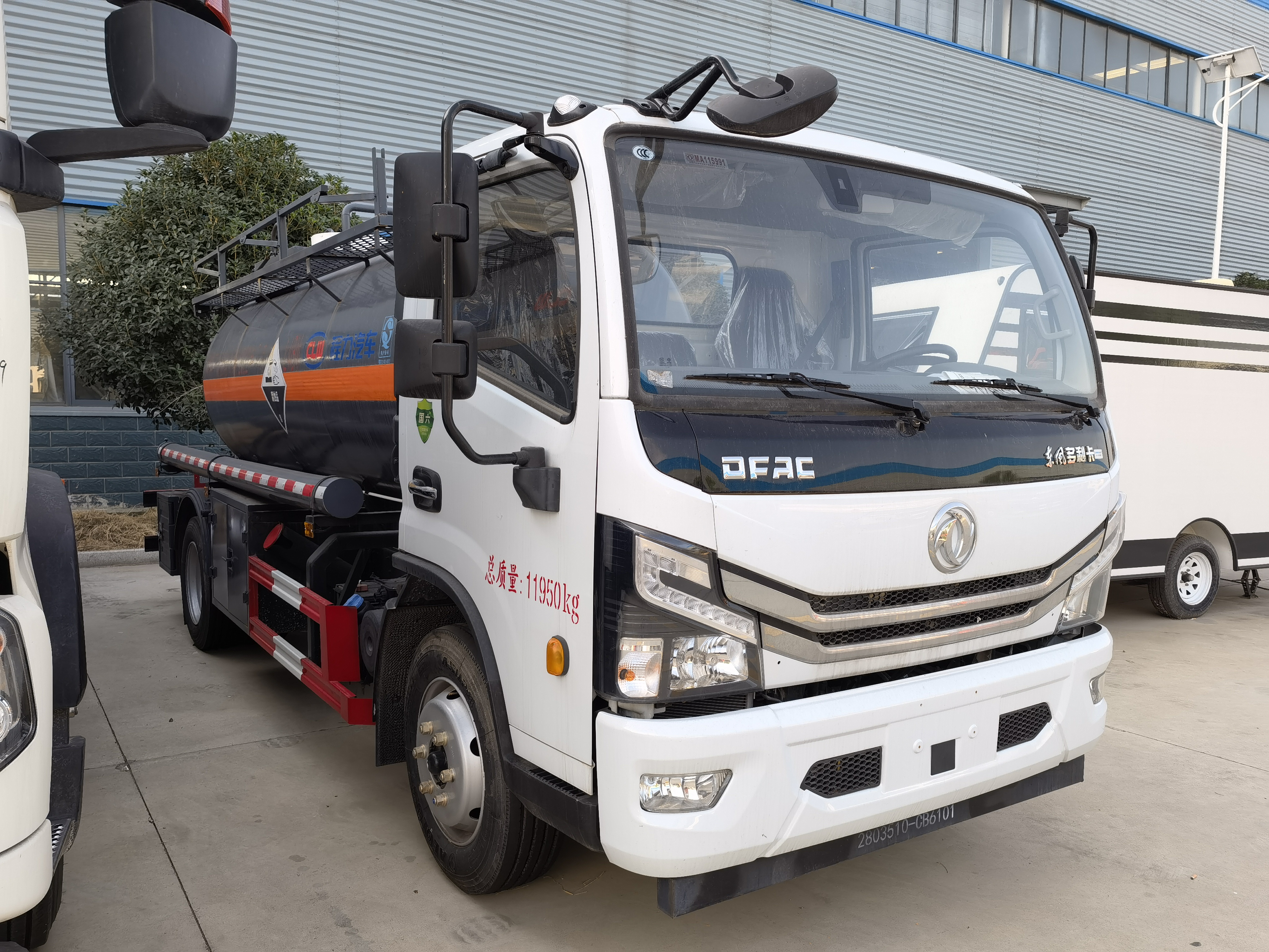 東風大多利卡國六腐蝕品罐式運輸車采用的是東風原廠危險品車底盤,玉柴165馬力發動機。寬體駕駛室可乘坐3人是多利卡顯著的特點,原廠的空調制冷效果顯著,重點是為了增加客戶體驗感,該車車內噪音密封性有大幅度提升,可達到轎車水平。該車采用的是寬體后視鏡及流媒體智能后視鏡,貨箱容積率提升6%帶中控鎖、電動門窗、貨箱采用的是外罐體材質為Q235B型4.2mm厚板材,封頭4.5mm厚,罐體通倉,內襯16mm聚乙烯,雙層鋼襯塑防浪板,兩個全塑罐口蓋,罐口周圍用方盒子式圍邊,圍板內做襯塑防腐,帶兩套不銹鋼安全閥,罐體頂部帶不銹鋼升降護欄,帶走道,罐體底部帶一個DN100不銹鋼襯氟海底閥(海底閥帶聲光報警裝置),罐體后尾部左右各一個DN60鋼襯塑球閥為出料口帶全塑保護箱,大梁下出料,一個工具箱,尾部爬梯。兩根卸料管,兩個8KG滅火器,其余標配。