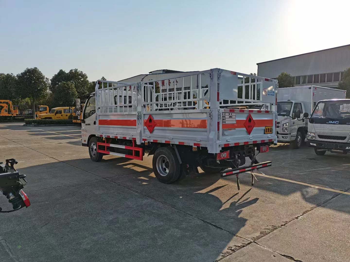 福田奧鈴全柴132馬力藍牌氣瓶車采用的是福田奧鈴專用危險品車底盤,少有的斷氣剎藍牌氣瓶運輸車,整車型號:JDF5041TQPB6氣瓶運輸車,全柴132馬力2.5排量,車廂內部2米寬,不超重,額載是1.8噸,在藍牌車型中額載更大,裝貨不擔心超載的問題。