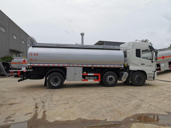 東風(fēng)D3V國六三軸供液車采用的是東風(fēng)D3V高頂雙臥駕駛室,康機(jī)B6.7NS6B260發(fā)動(dòng)機(jī),法士特九檔變速箱,1995+3600mm軸距,東風(fēng)4.5噸雙前橋/10噸后橋,輪胎295/80R22.5 18PR,嚴(yán)格按公告尺寸及外型制作,罐體容積17立方,罐體外形尺寸(長×長軸×短軸)(mm): 6300×2400×1500(18.5立方), 6300×2350×1400(17立方),介質(zhì):潤滑油、減水劑,凈水劑,方罐,罐體采用5mm碳鋼板制作,水壓封頭,山東齒輪泵,泵進(jìn)泵出在右側(cè),兩個(gè)普通罐口,兩具滅火器,一個(gè)工具箱,貼反光條,罐體顏色銀灰色,配兩根與管道箱同長的輸料管及快接頭。