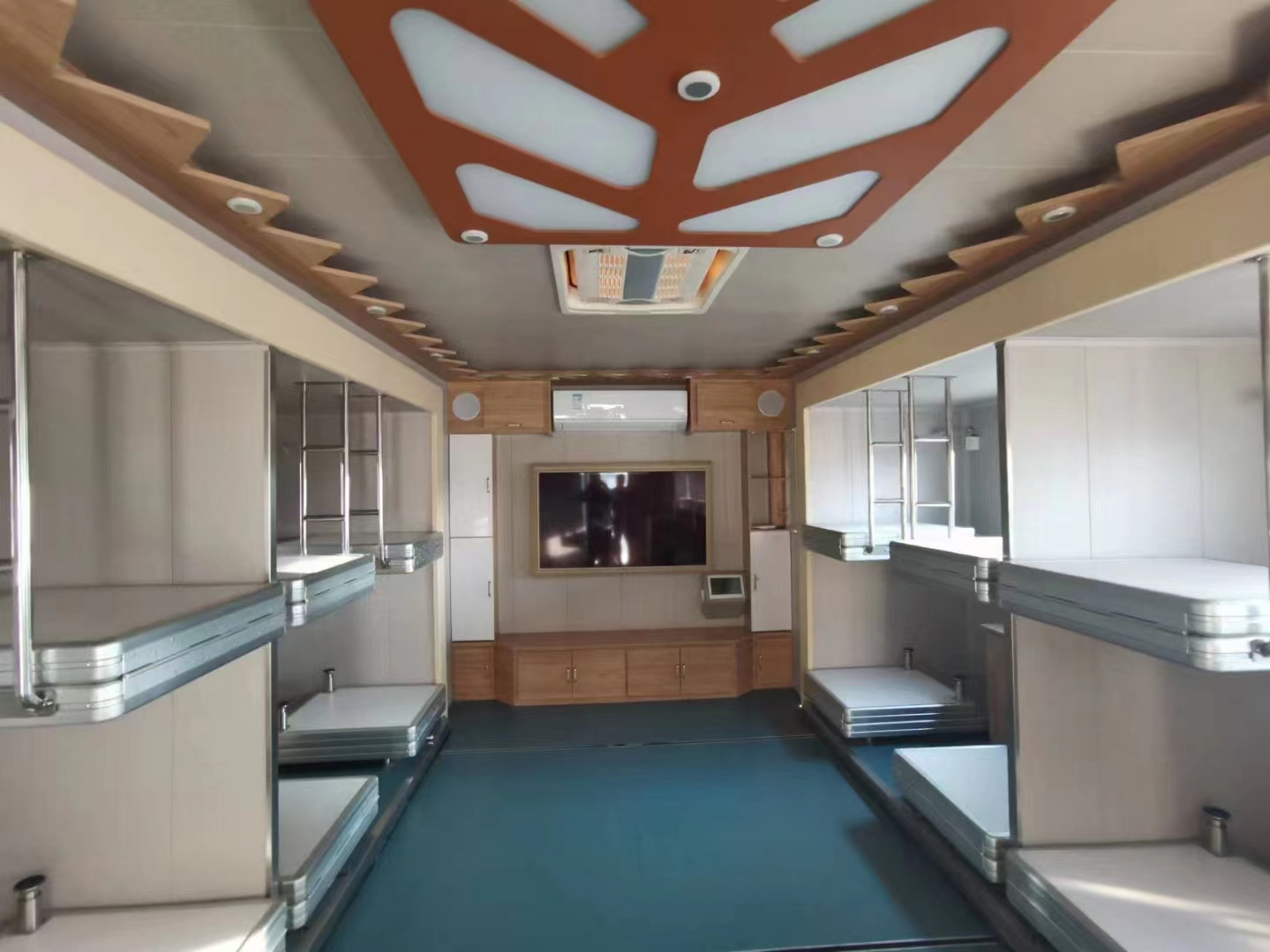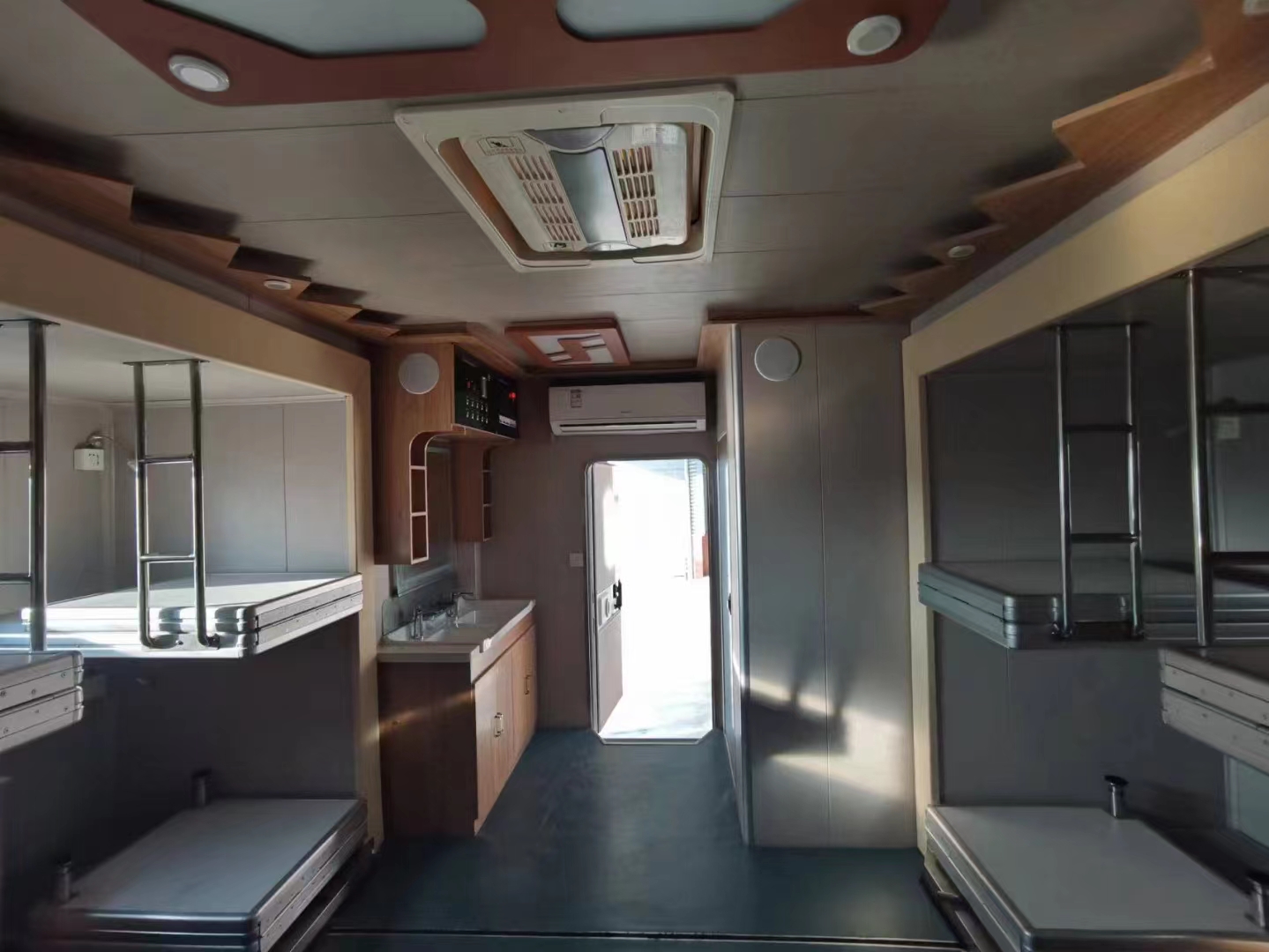 移動式雙托方艙頂圍護結(jié)構(gòu)采用整體鋼板沖壓而成,滿焊密閉,室內(nèi)吊頂采用的是雙面鋼純硫氧鎂復合潔凈彩鋼板。箱體全部采用的是防腐蝕漆做廂體面層。外墻圍護采用外拓開啟,使箱體內(nèi)空間更大。在箱體內(nèi)部可進行多種設備擺放。我司根據(jù)客戶要求進行定制。